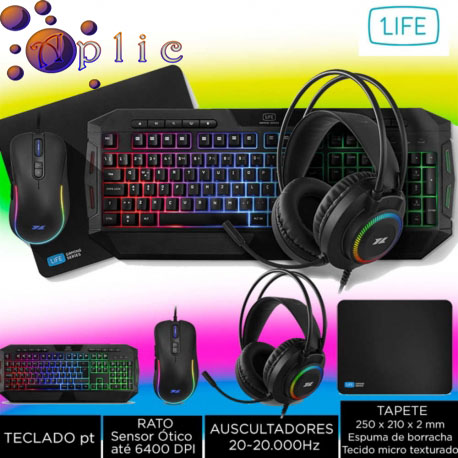 Auscultadores: Frequência de Resposta: 20~20.000Hz Sensibilidade: 112 dB Altifalante: 50 mm Microfone: Conexões: 1x jack 3.5 mm áudio; 1x jack 3.5 mm microfone; 1x USB (apenas para iluminação LED) Compatibilidade: PC TECLADO pt RATO Sensor: Ótico até 6400 DPI TAPETE Dimensões: 250x210x2 mm Base: Espuma de borracha Tecido micro texturado