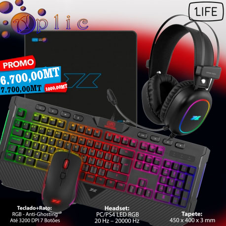 BUNDLE 1LIFE - GAMING HEADSET + TECLADO + RATO + MOUSEPAD