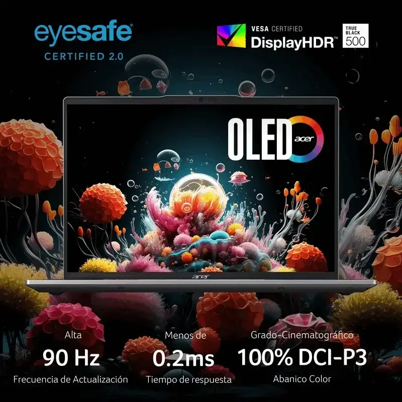 Diga olá ao novo Acer Swift Go 14, o seu PC com IA, com o processador Intel® Core™ Ultra, o brilho visual de um ecrã OLED, numa estrutura atrativa, fina e leve, que é ótima em movimento! Com o processador Intel® Core™ Ultra e gráficos Intel® Graphics integrados, o PC com IA Swift Go 14 dispõe agora de um aumento de desempenho até 47% com eficiência de energia melhorada. Permite-lhe realizar as tarefas mais exigentes sem esforço.