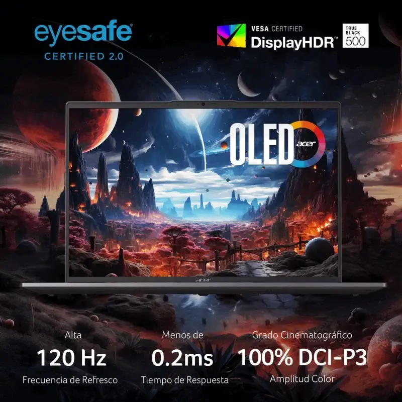 Diga olá ao novo Swift Go 16, o seu PC com IA, com o processador Intel® Core™ Ultra, o brilho visual de um OLED, numa estrutura atrativa, fina e leve, que é ótima em movimento! Com o processador Intel® Core™ Ultra e gráficos Intel® Graphics integrados, o PC com IA Swift Go 16 dispõe agora de um aumento de desempenho até 47% com eficiência de energia melhorada. Permite-lhe realizar as tarefas mais exigentes sem esforço.