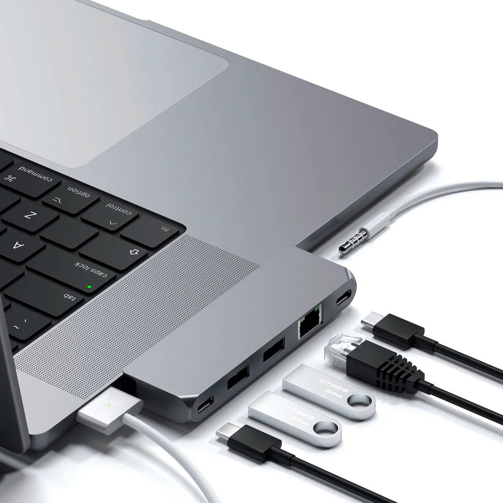 Concebido especialmente para 2021 MacBook Pro M1 para completar as portas do seu portátil Inclui uma porta USB 4 de função completa, portas de dados USB-A, dados USB-C, Ethernet, e tomada de áudio Fácil de usar, design plug and play