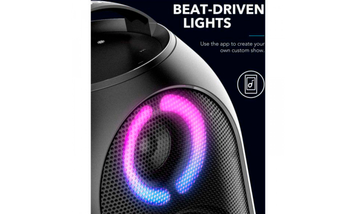NÃO CHORE SOBRE BEBIDAS ENTORNADAS A caixa à prova de água IPX7 do Rave Party Cast mantém a música a bombear mesmo que as bebidas sejam entornadas, se for apanhado por uma chuva inesperada, ou se o altifalante de alguma forma encontrar o seu caminho para o fundo da piscina. TEMPO PARA BRILHAR O algoritmo de iluminação Rave Party Lighting e DSP independente sincronizam os LEDs do Rave Party Cast com o ritmo. Personalize ainda mais a sua experiência com a funcionalidade Light DJ na aplicação Soundcore. LEVANTE-SE TODA A NOITE Uma enorme bateria de iões de lítio com a tecnologia de bateria própria de Anker alimenta até 18 horas de música sem parar para manter a festa 'até ao amanhecer'. E à medida que o nível de energia do seu telefone desce cada vez mais, ligue-o à porta USB incorporada para o recarregar. QUE OS JOGOS COMECEM Não há festa como um Rave Party Cast! Use o aplicativo para jogar 6 jogos de festa icónicos com os seus amigos, antigos e novos! TECNOLOGIA PARTYCAST Ligue mais de 100 altifalantes de rave partycast ao ar livre através de um único dispositivo para sincronizar a sua banda sonora de festa através de cada altifalante para uma parede de som trovejante. Especificações: Potência: 80W Altifalantes: Woofer: 5.25" Tweeter: 2" Passive Radiator: 5.25" Iluminação: Sim, RGB Bateria: até 18 horas de reprodução Certificação IP: IPX7 Alimentação: AC