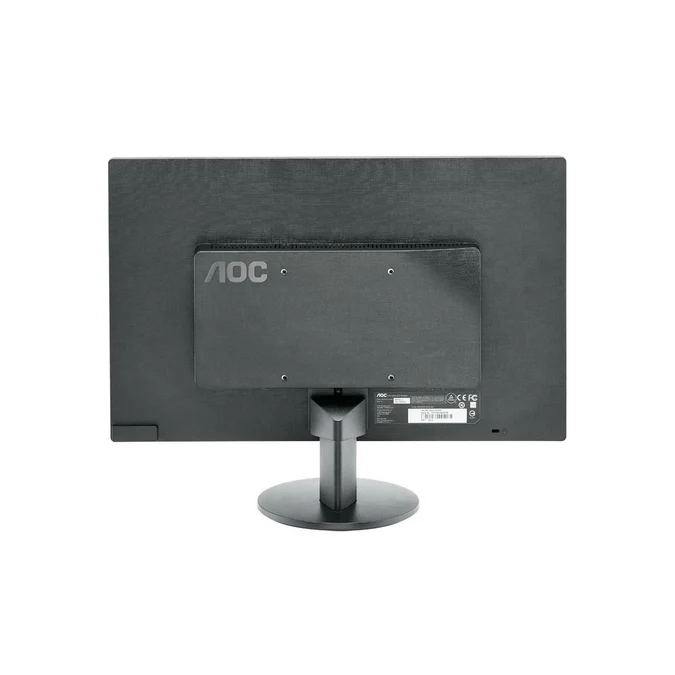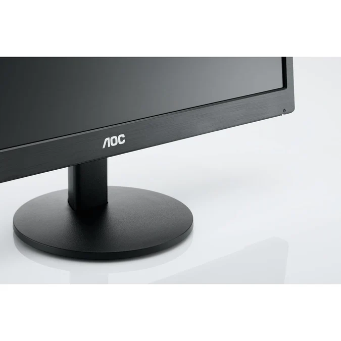 Monte Vesa Os suportes Ergo Base da AOC oferecem versatilidade, robustez e facilidade de utilização num único pacote. Mas ainda quer usar o seu suporte de parede ou a configuração de vários monitores usando suportes de secretária? Os suportes VESA oferecem-lhe a máxima flexibilidade. De cabeça para baixo, no modo pivot, um em cima do outro, fixe o seu monitor onde desejar utilizando suportes e montagens de terceiros, graças à opção de montagem VESA. Desempenho inteligente, visualização brilhante Este monitor compacto de 18,5" oferece um bom desempenho para utilizadores domésticos. Também ajuda a poupar com o seu consumo de energia modesto e oferece opções de inclinação e montagem na parede. Especificações Produto: AOC Série 70 E970SWN. Diagonal do ecrã: 47 cm (18,5") Resolução do ecrã: 1366 x 768 pixels Tipo HD: WXGA Tecnologia de visualização: LCD Superfície de exposição: mate Tempo de resposta: 5 ms Proporção nativa: 16:9 Ângulo de visão, horizontal: 90° Ângulo de visão vertical: 65°. Montagem VESA. Cor do produto: Preto