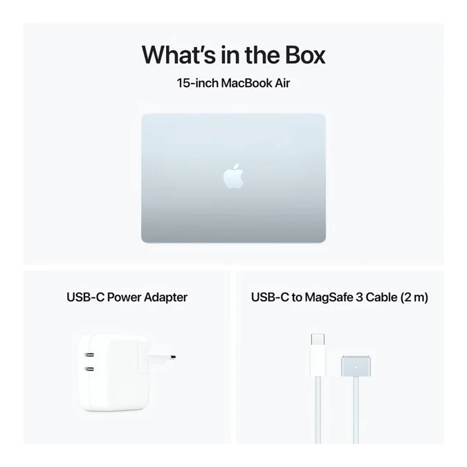 The 13-inch MacBook Air with the M4 chip lets you fly through work and play. With Apple Intelligence, a brilliant Liquid Retina display, up to 18 hours of battery life and a strikingly thin and light design, it’s built to last and can take on just about anything, anywhere. Key Features Supercharged By M4 The Apple M4 chip brings even more speed and fluidity to everything you do, like working across multiple apps, editing videos or playing graphically demanding games. Up To 18 Hours of Battery Life MacBook Air delivers the same amazing performance whether it’s running on battery or plugged in. Built for Apple Intelligence Apple Intelligence is the personal intelligence system that helps you write, express yourself and get things done effortlessly. With groundbreaking privacy protections, it gives you peace of mind that no one else can access your data — not even Apple. Portable Design Super light and just 1.13 centimetres thin, MacBook Air fits easily into your bag — and your on-the-go lifestyle. A Brilliant Display The 13.6 inch Liquid Retina display supports one billion colours. Photos and videos pop with rich contrast and sharp detail, and text appears super crisp. Look and Sound Your Best Everything looks and sounds amazing with a 12MP Center Stage camera, three mics, and four speakers with Spatial Audio. Apps Fly In MacOS All your favourites run lightning fast in macOS, including Microsoft 365, Adobe Creative Cloud and Google Workspace. If You Love Iphone, You’ll Love Mac Mac works like magic with your other Apple devices. View and control what’s on your iPhone from your Mac with iPhone Mirroring. Copy something on iPhone and paste it on Mac. Send texts with Messages or use your Mac to make and answer FaceTime calls. Connect It All MacBook Air features two Thunderbolt 4 ports, a MagSafe charging port, a headphone jack, Wi-Fi 6E and Bluetooth 5.3. And it supports up to two external displays. Technical Specification Product: Apple MacBook Air 13 Operating system installed: macOS Sonoma Product colour: Sky Blue Product type: Laptop Form factor: Clamshell Processor family: Apple M Processor model: M4 (10-Core CPU with 4 performance cores and 6 efficiency cores) Display diagonal: (34.5 cm) 13.6" Display resolution: 2560 x 1664 pixels Display: Liquid Retina, LED-backlit display with IPS technology, 500 nits brightness Internal memory: 16 GB unified memory Total storage capacity: 256 GB Storage media: SSD On-board graphics card model: 8-core GPU Hardware-accelerated ray tracing 16-core Neural Engine 120GB/s memory bandwidth Keyboard: Backlit, Magic Keyboard Camera: 12MP Center Stage camera with support for Desk View Weight: 1.24 kg Warranty: 1-Year Carry-in Connection and Ports MagSafe 3 charging port 3.5 mm headphone jack Two Thunderbolt 4 (USB-C) ports with support for: Charging, DisplayPort, Thunderbolt 4 (up to 40Gb/s), USB 4 (up to 40Gb/s) In The Box 13-inch MacBook Air USB-C Power Adapter USB-C to MagSafe 3 Cable