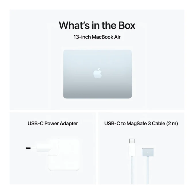 Key Features Supercharged By M4 The Apple M4 chip brings even more speed and fluidity to everything you do, like working across multiple apps, editing videos or playing graphically demanding games. Up To 18 Hours of Battery Life MacBook Air delivers the same amazing performance whether it’s running on battery or plugged in. Built for Apple Intelligence Apple Intelligence is the personal intelligence system that helps you write, express yourself and get things done effortlessly. With groundbreaking privacy protections, it gives you peace of mind that no one else can access your data — not even Apple. Portable Design Super light and just 1.13 centimetres thin, MacBook Air fits easily into your bag — and your on-the-go lifestyle. A Brilliant Display The 13.6 inch Liquid Retina display supports one billion colours. Photos and videos pop with rich contrast and sharp detail, and text appears super crisp. Look and Sound Your Best Everything looks and sounds amazing with a 12MP Center Stage camera, three mics, and four speakers with Spatial Audio. Apps Fly In MacOS All your favourites run lightning fast in macOS, including Microsoft 365, Adobe Creative Cloud and Google Workspace. If You Love Iphone, You’ll Love Mac Mac works like magic with your other Apple devices. View and control what’s on your iPhone from your Mac with iPhone Mirroring. Copy something on iPhone and paste it on Mac. Send texts with Messages or use your Mac to make and answer FaceTime calls. Connect It All MacBook Air features two Thunderbolt 4 ports, a MagSafe charging port, a headphone jack, Wi-Fi 6E and Bluetooth 5.3. And it supports up to two external displays. Technical Specification Product: Apple MacBook Air 13 Operating system installed: macOS Sonoma Product colour: Sky Blue Product type: Laptop Form factor: Clamshell Processor family: Apple M Processor model: M4 (10-Core CPU with 4 performance cores and 6 efficiency cores) Display diagonal: (34.5 cm) 13.6" Display resolution: 2560 x 1664 pixels Display: Liquid Retina, LED-backlit display with IPS technology, 500 nits brightness Internal memory: 16 GB unified memory Total storage capacity: 512 GB Storage media: SSD On-board graphics card model: 10-core GPU Hardware-accelerated ray tracing 16-core Neural Engine 120GB/s memory bandwidth Keyboard: Backlit, Magic Keyboard Camera: 12MP Center Stage camera with support for Desk View Weight: 1.24 kg Warranty: 1-Year Carry-in Connection and Ports MagSafe 3 charging port 3.5 mm headphone jack Two Thunderbolt 4 (USB-C) ports with support for: Charging, DisplayPort, Thunderbolt 4 (up to 40Gb/s), USB 4 (up to 40Gb/s) In The Box 13-inch MacBook Air USB-C Power Adapter USB-C to MagSafe 3 Cable