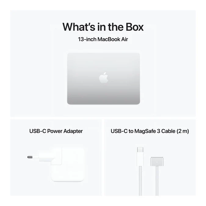 MacBook Air 15″. Power that puts in the hours. The M3 chip brings even greater capabilities to the super-portable 15-inch MacBook Air. With up to 18 hours of battery life and a spacious Liquid Retina display, you can take it anywhere and blaze through work and play. macbook_air_15_in_m3_space_gray_pdp_image_position_8__wwen_1_3.jpg (1200×1200) Key Features Lean. Mean. M3 Machine The blazing-fast MacBook Air with the M3 chip is a super-portable laptop that sails through work and play. Portable Design Lightweight and just over 11 millimetres thin, so you can take MacBook Air anywhere you go. Get More Done Faster The powerful 8-core CPU and 10-core GPU of the Apple M3 chip keep things running smoothly. Up to 18 hours of Battery life Amazing, all-day battery life so you can leave the power adapter at home. macbook_air_13_in_m3_space_gray_pdp_image_position_4__wwen_1_2.jpg (1200×1200) More Room for What You Love The 15.3-inch Liquid Retina display supports one billion colours. Look Sharp, Sound Great Everything looks and sounds amazing with a 1080p HD camera, three mics, and six speakers with Spatial Audio. macbook_air_13_in_m3_starlight_pdp_image_position_6__wwen_4.jpg (1200×1200) Apps Fly with Apple Silicon All your favourites, from Microsoft 365 to Adobe Creative Cloud, run lightning fast in macOS. Get Connected MacBook Air features two Thunderbolt ports, a headphone jack, Wi-Fi 6E, Bluetooth 5.3 and a MagSafe charging port and connect up to two external displays with the laptop lid closed. If You Love iPhone, You'll Love Mac MacBook Air works like magic with your other Apple devices. Start an email on your iPhone and finish it on your Mac. Send text messages from your Mac and much more. Technical Specification Product: Apple MacBook Air 15 Operating system installed: macOS Sonoma Product colour: Silver Product type: Laptop Form factor: Clamshell Processor family: Apple M Processor model: M3 (8-core CPU with 4 performance cores and 4 efficiency cores) Display diagonal: (38.9 cm) 15.3" Display resolution: 2880 x 1864 pixels Display: Liquid Retina, LED-backlit display with IPS technology, 500 nits brightness Internal memory: 16 GB unified memory Total storage capacity: 256 GB Storage media: SSD On-board graphics card model: 10-core GPU Hardware-accelerated ray tracing 16-core Neural Engine 100GB/s memory bandwidth Weight: 1.51 kg Warranty: 1-year Carry-in Connection and Ports MagSafe 3 charging port 3.5 mm headphone jack Two Thunderbolt / USB 4 ports with support for: Charging, DisplayPort, Thunderbolt 3 (up to 40Gb/s), USB 4 (up to 40Gb/s) In The Box 15-inch MacBook Air 35W Dual USB-C Port Compact Power Adapter USB-C to MagSafe 3 Cable (2 m)