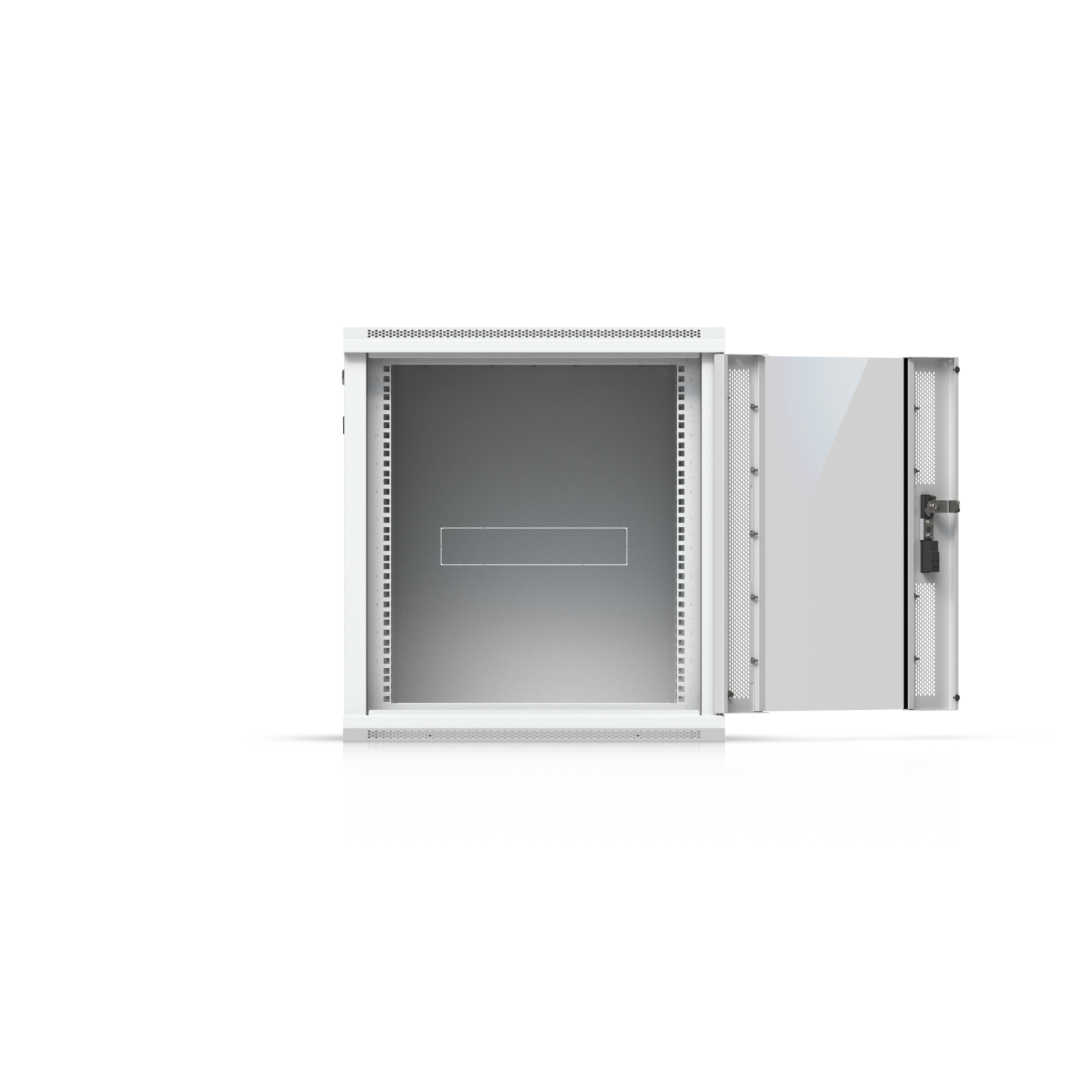 Armário de rack compacto e totalmente montado, com frente de vidro, ventiladores duplos e painéis laterais removíveis. Tamanho compacto para instalação Ventoinha integrada com sensor de temperatura para ventilação eficaz Painéis laterais removíveis para fácil acesso