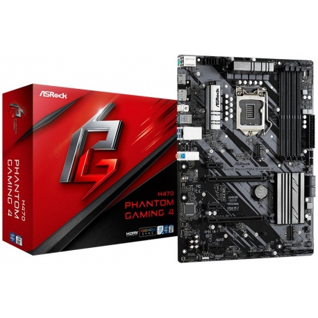 Asrock H470 Phantom Gaming 4, Intel, LGA 1200, Intel® Celeron®, Intel® Core? i3, Intel Core i5, Intel Core i7, Intel Core i9, Intel® Pentium®, DDR4-SDRAM, DIMM, 2133,2400,2666,2800,2933 MHz