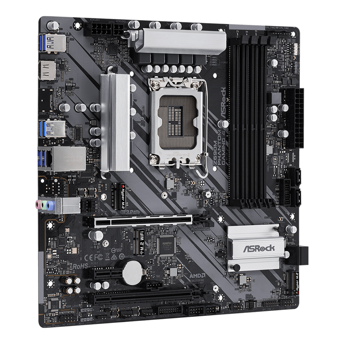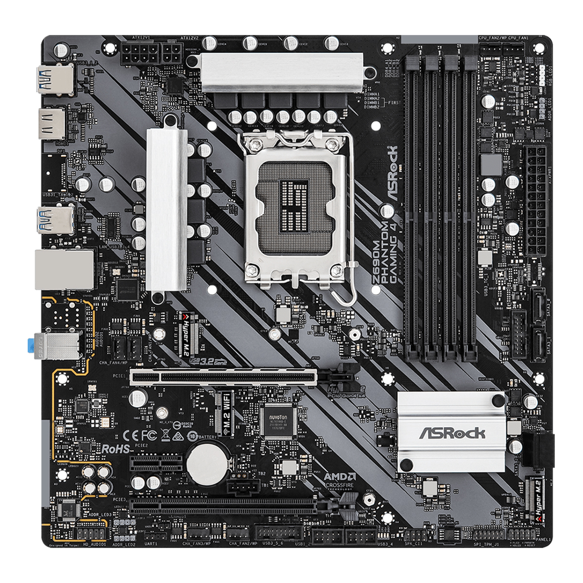 Suporta processadores Intel® da 12ª geração Core™ (LGA1700) 7 Fases Dr.MOS Power Design Suporta DDR4 4800MHz (OC) 1 PCIe 4.0 x16, 1 PCIe 3.0 x16, 1 PCIe 3.0 x1 1 M.2 Key-E para WiFi Opções de Saída Gráfica: HDMI Realtek ALC897 7.1 CH HD Audio Codec, Nahimic Audio 4 SATA3 1 Hyper M.2 (P