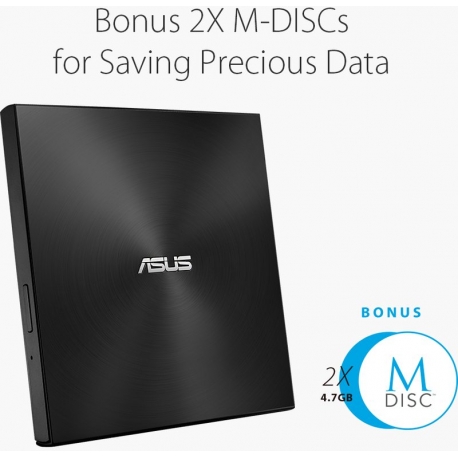 - Suporte M-DISC, Leitura 8X , Gravação 4X - O M-DISC fornece uma qualidade de armazenamento fantástica para arquivo, para proteger as suas fotos, vídeos e dados preciosos durante mais de 1000 anos DVD+/-RW ASUS 8x Externo Slim Black USB - SDRW-08U7M-U BLK Suporte de armazenamento de arquivo de 1.000 anos M-Disc Inclui dois M-DISC DVDs 4,7 GB livres 8X DVD velocidade de gravação Fator de forma 13 milímetros Ultra-slim Nero BackItUp solução de backup completo para dispositivos Android Compatível