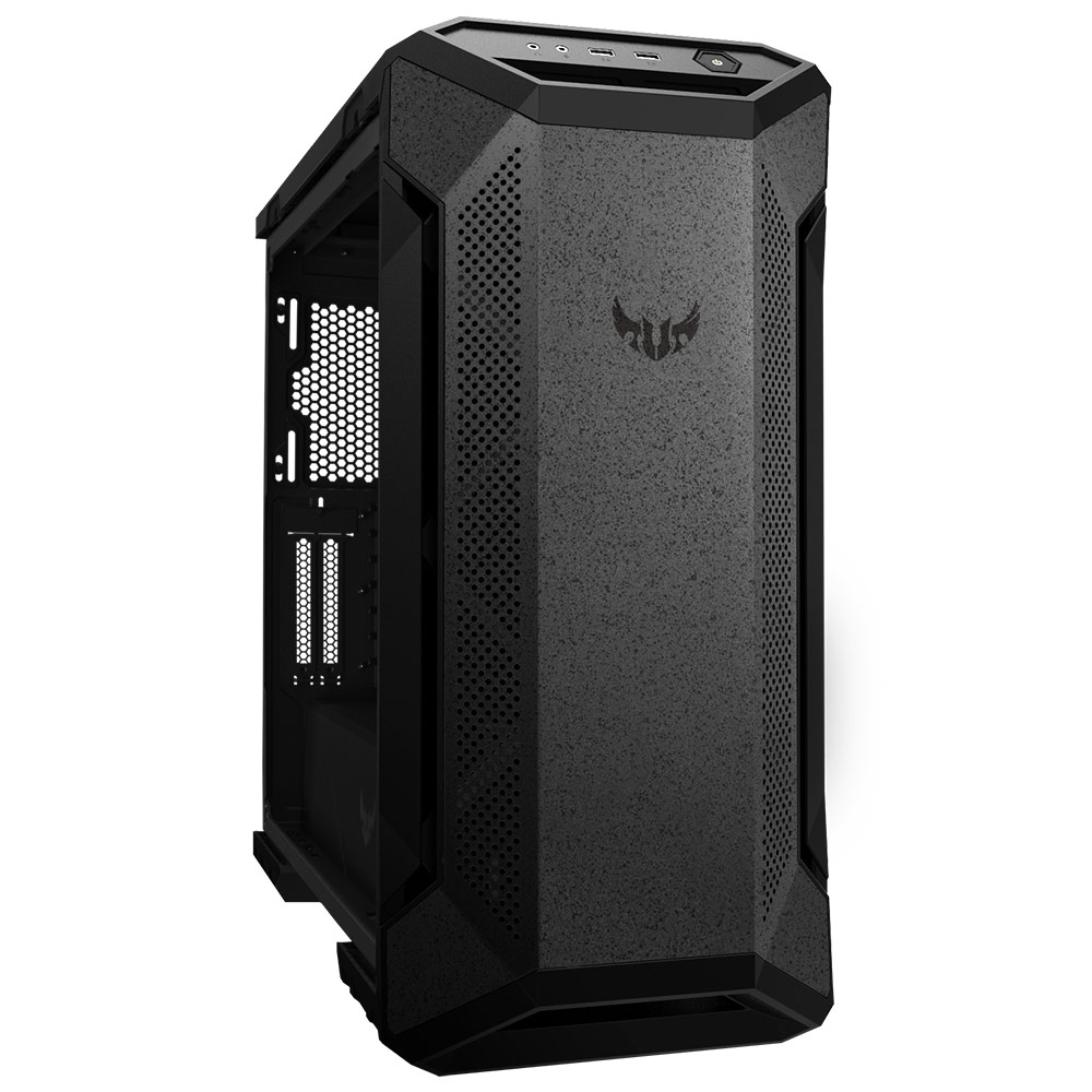 Concebido para ser notado: Painel frontal metálico com padrão de salpicos personalizados TUF Gaming, e painel lateral de 4mm de espessura, fumado e vidro temperado para mostrar os interiores do seu edifício. Espaço reservado: Para radiadores de arrefecimento de água de 360mm montados tanto à frente como no topo, mais um radiador de 140mm na parte traseira. Mostre a sua construção: O seu invólucro é feito de aço SGCC com tinta de fluorocarbono durável que proporciona uma proteção est