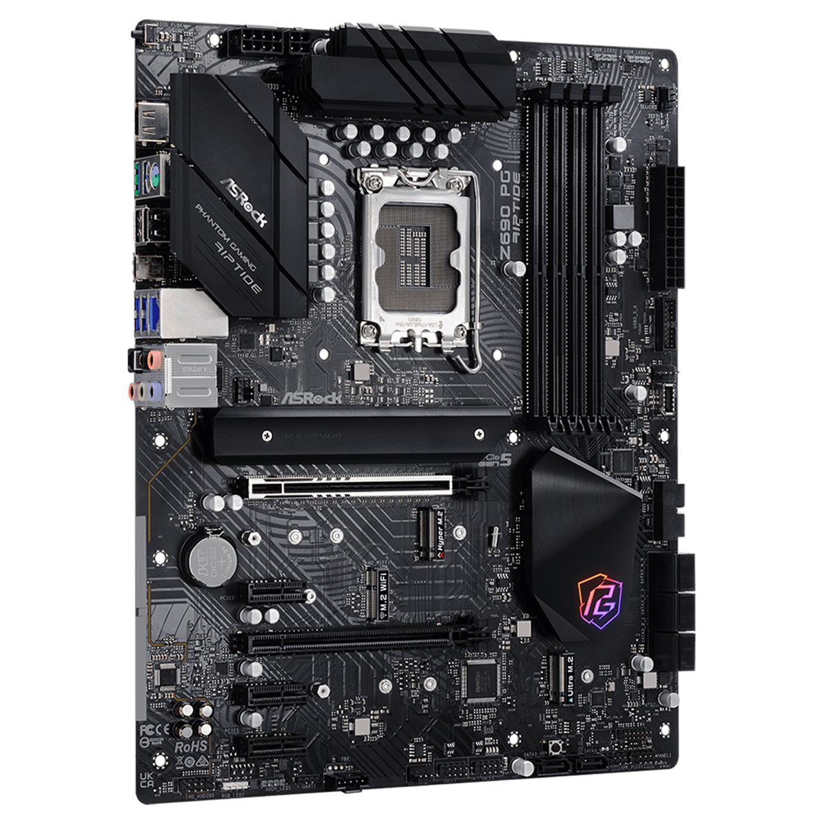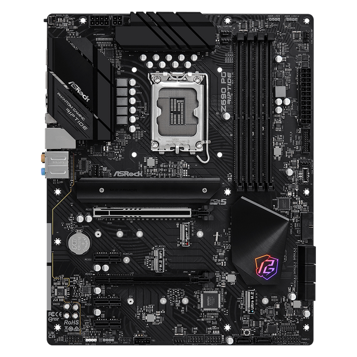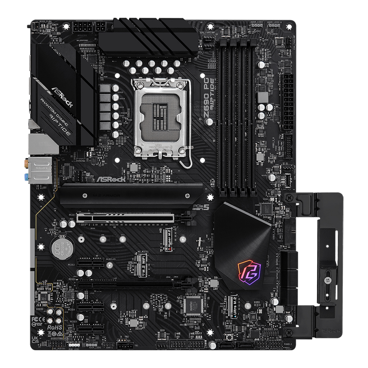 PCIE 5.0 + SURFACE-MOUNT TECH Em comparação com o slot PCIe convencional estilo DIPe, o slot PCIe tipo SMT melhora o fluxo do sinal e maximiza a estabilidade sob alta velocidade, um avanço fundamental para suportar totalmente a velocidade de iluminação da mais recente norma PCIe 5.0. A última PCI Express 5.0 é capaz de executar uma largura de banda de 128GBps de tirar o fôlego, pronta para libertar todo o potencial das futuras placas gráficas de topo de gama. KILLER™ ETHERNET E3100 O controlador Ethernet Killer E3100 de 2,5 Gbps foi concebido especicamente para jogadores competitivos e utilizadores ávidos de desempenho. O motor melhorado de detecção e priorização proporciona a derradeira experiência de rede para jogos e aplicações multimédia. ÁUDIO NAHIMIC Quer esteja a utilizar auscultadores, auriculares, altifalantes externos ou internos, via USB, Wi-Fi, saída analógica ou mesmo HDMI, o Nahimic Audio oferece-lhe a experiência de audição mais envolvente, vibrante e rica em detalhes. SUPORTE DA PLACA GRÁFICA ASROCK Instale a sua placa gráfica pesada no suporte; ligue-a à sua motherboard e ao seu chassis com parafusos. Deslize flexivelmente para cima e para baixo para ajustar perfeitamente a altura necessária para a sua placa gráfica no lugar. POLICHROME RGB Para além da iluminação RGB incorporada, também inclui conectores RGB integrados e um conector RGB endereçável que permite a ligação da motherboard a dispositivos LED compatíveis tais como tiras, ventoinhas de CPU, refrigeradores, chassis e assim por diante. Os utilizadores podem também sincronizar dispositivos RGB LED através dos acessórios com certificação Polychrome RGB Sync para criar os seus próprios efeitos de iluminação únicos. SOLUÇÃO M.2 DE ALTA VELOCIDADE Esta motherboard é capaz de acomodar múltiplos dispositivos de armazenamento M.2, um dos quais pode suportar PCI Express 4.0 M.2 SSD, é capaz de executar o dobro da velocidade em comparação com a 3ª geração anterior, dando uma experiência de transferência de dados rápida e relâmpago. Processador: Intel® Socket LGA1700 para processadores Intel® Core ™ de 12ª geração, Pentium® Gold e Celeron® Suporta Tecnologia Intel® Turbo Boost Max 3.0 e Tecnologia Intel® Hybrid Chipset: Intel® Z690 Memória RAM: 4 x DIMM, Max. 128GB, DDR4 5000+(OC) Non-ECC, Un-buffered Memory Arquitetura de memória Dual Channel Suporta Intel® Extreme Memory Profile (XMP) 2.0 Gráficos: 1x HDMI 2.1 Suporta no máximo 4K@60Hz Slots de Expansão: 2x PCIe 5.0 x16 slot 3x PCIe 3.0 x1 slot 1 x M.2 Socket (Key E), suporta type 2230 WiFi/BT PCIe WiFi module e Intel® CNVi Armazenamento: Suporta 8x portas SATA 6Gb/s 1 x Hyper M.2 Socket (M2_1, Key M), supports type 2260/2280 PCIe Gen4x4 (64 Gb/s) mode 1 x Hyper M.2 Socket (M2_2, Key M), supports type 2242/2260/2280 PCIe Gen4x4 (64 Gb/s) mode 1 x Ultra M.2 Socket (M2_3, Key M), supports type 2260/2280/22110 SATA3 6.0 Gb/s & PCIe Gen3x4 (32 Gb/s) modes Rede: 1 x 2.5 Gigabit LAN 10/100/1000/2500 Mb/s (Killer E3100G) Áudio: Realtek 7.1 ALC897 Audio Codec Conectores internos: 1 x SPI TPM Header 1 x Power LED and Speaker Header 1 x RGB LED Header* 3 x Addressable LED Headers 1 x CPU Fan Connector (4-pin) 1 x CPU/Water Pump Fan Connector (4-pin) (Smart Fan Speed Control) 4 x Chassis/Water Pump Fan Connectors (4-pin) (Smart Fan Speed Control) 1 x 24 pin ATX Power Connector 1 x 8 pin 12V Power Connector (Hi-Density Power Connector) 1 x 4 pin 12V Power Connector (Hi-Density Power Connector) 1 x Front Panel Audio Connector 1 x Thunderbolt™ AIC Connector (5-pin) (Supports ASRock Thunderbolt™ 4 AIC Card) 2 x USB 2.0 Headers (Support 4 USB 2.0 ports) (Supports ESD Protection) 2 x USB 3.2 Gen1 Headers (Support 4 USB 3.2 Gen1 ports) (ASMedia ASM1074 hub) (Supports ESD Protection) 1 x Front Panel Type C USB 3.2 Gen1 Header (Supports ESD Protection) 1 x Clear CMOS Button Portas I/O Painel Traseiro: 3 x Antenna Mounting Points 1 x PS/2 Mouse/Keyboard Port 1 x HDMI Port 1 x Optical SPDIF Out Port 2 x USB 3.2 Gen2 Type-A Ports (10 Gb/s) (ReDriver) (Supports ESD Protection) 1 x USB 3.2 Gen2x2 Type-C Port (20 Gb/s) (ReDriver) (Supports ESD Protection) 2 x USB 3.2 Gen1 Type-A Ports (Supports ESD Protection) 2 x USB 2.0 Ports (Supports ESD Protection) 1 x RJ-45 LAN Port with LED (ACT/LINK LED and SPEED LED) 1 x BIOS Flashback Button HD Audio Jacks: Rear Speaker / Central / Bass / Line in / Front Speaker / Microphone (Gold Audio Jacks) Dimensões: Formato ATX, 30.5 cm x 24.4 cm