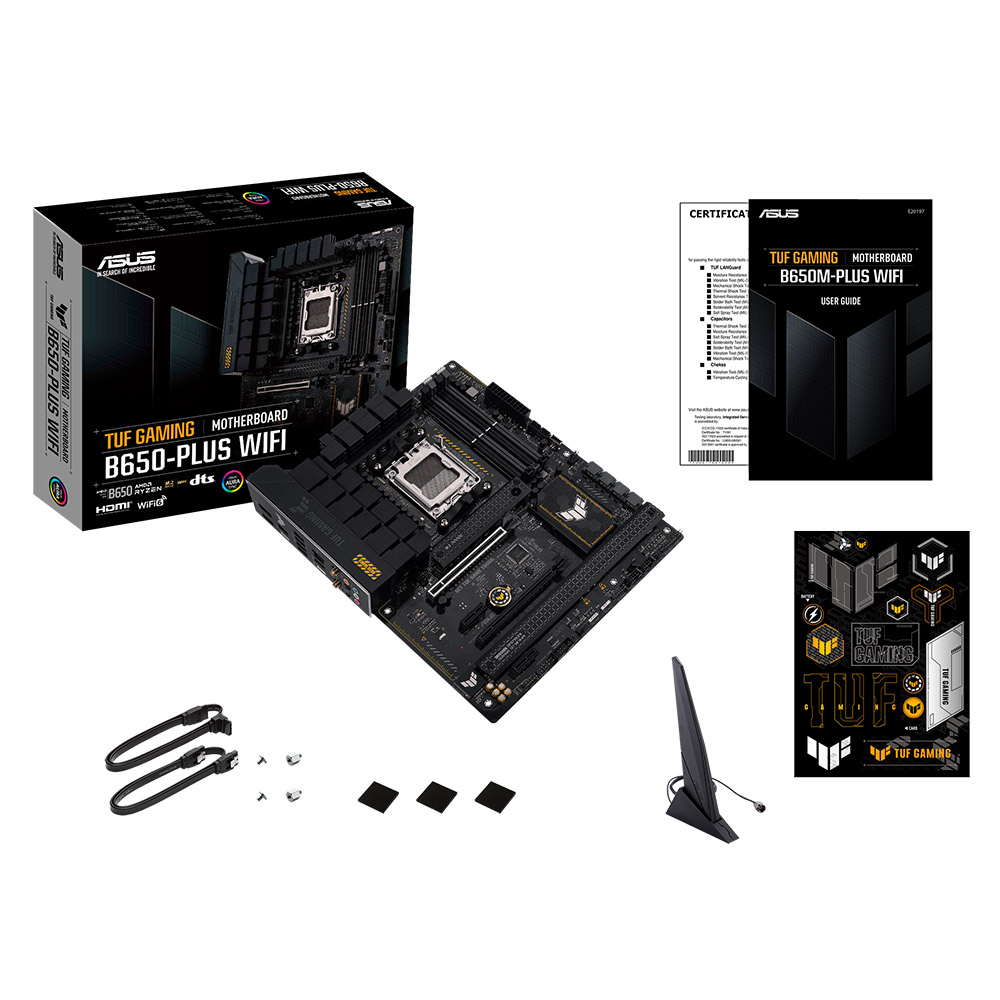 A ASUS TUF GAMING B650-PLUS WiFi toma todos os elementos essenciais dos mais recentes processadores da série AMD Ryzen 7000 e combina-os com características prontas para o jogo e durabilidade comprovada.