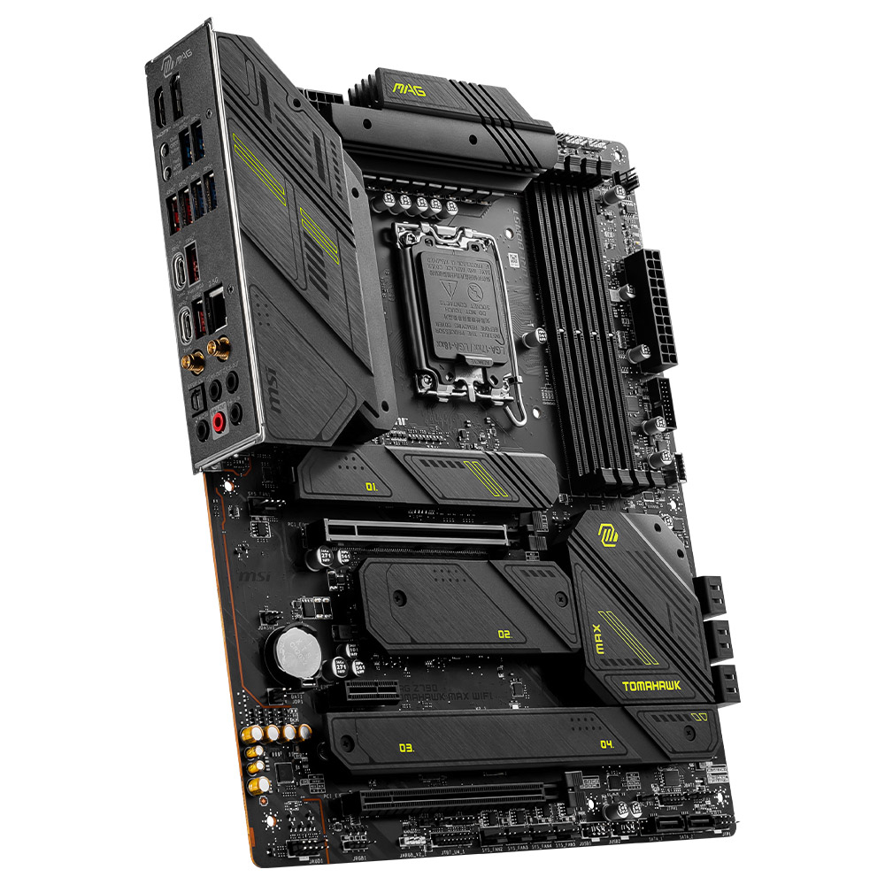 A MAG Z790 TOMAHAWK MAX WIFI foi concebida para os jogadores, proporcionando uma base estável, sólida e duradoura para a construção dos seus PCs. Equipado com uma solução Wi-Fi 7, LAN 2,5G, DDR5, soluções PCIe 5.0 e o exclusivo M.2 Shield Frozr, está preparado para os processadores Intel® Core de 14ª e 13ª geração. INSTALAÇÃO M.2 SEM FERRAMENTAS O primeiro magnético industrial com o patenteado Screwless M.2 Shield Frozr e o EZ M.2 Clip proporcionam a forma mais fácil de instalar o M.2. LIGHTNING GEN 5 PCI-E Duplicando em relação à geração anterior, a largura de banda de uma interface x16 pode atingir 128 GB/s. Especificações: Chipset: Intel Z790 Processador: Suporta processadores Intel® Core™ de 14ª/ 13ª/ 12ª geração, processadores Intel® Pentium® Gold e Celeron, LGA 1700 Memória RAM: 4 x DIMM, máx. 192 GB, DDR5 7800+ MHz Arquitetura de memória dual-channel Suporta non-ECC, memória Un-buffered Suporta Intel® Extreme Memory Profile (XMP) 3.0 OC Gráficos: 1 x HDMI® 2.1 Suporta no máximo 4K 60Hz 1 x DisplayPort 1.4 Suporta no máximo 8K 60Hz Slots de Expansão: 2 x slots PCIe x16 1 x slot PCIe x1 Armazenamento: 2x SLot M.2 PCIe 5.0 x4 3x Slots M.2 PCIe 4.0 x4 8x Portas SATA 6G Ethernet: Intel® 2.5GbE Ethernet Wireless & Bluetooth: Intel® Wi-Fi 7 O módulo Wireless é pré-instalado na ranhura M.2 (Key-E) Suporta MU-MIMO TX/RX, 2.4GHz / 5GHz / 6GHz* (320MHz) até 5.8Gbps Suporta 802.11 a/ b/ g/ n/ ac/ ax/ be Suporta Bluetooth® 5.4, MLO, 4KQAM USB: 4x USB 2.0 (Frente) 4x USB 3.2 Gen1 Tipo A (Traseira) 2x USB 3.2 Gen1 Tipo A (Frente) 4x USB 3.2 Gen2 Tipo A (Traseira) 1x USB 3.2 Gen2 Tipo C (Traseira) 1x USB 3.2 Gen2 Tipo C (Frente) 1x USB 3.2 Gen2x2 Tipo C (Traseira) Áudio: Codec Realtek® ALC4080 Áudio de alto desempenho USB de 7.1 canais Suporta reprodução de até 32 bits/384 kHz no painel frontal Portas I/O Painel Traseiro: 1 x USB 3.2 Gen 2x2 20Gbps Type-C 1 x USB 3.2 Gen 2 10Gbps Type-C 4 x USB 3.2 Gen 1 5 Gbps 4 x USB 3.2 Gen 2 10Gbps 1 x HDMI® 2.1 1 x DisplayPort 1.4 1 x Módulo Wi-Fi 1 x Porta Ethernet Intel® 2.5 Gb 5 x Conectores de áudio 1 x Botão BIOS FlashBack™ 1 x Botão Clear CMOS Dimensões: Formato ATX, 30.4cm x 24.3cm