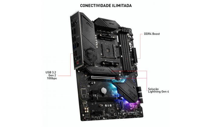 A série MPG traz o melhor dos jogadores, permitindo a expressão total em cores com controlo e sincronização avançados de iluminação RGB. Experimente outro nível de personalização com uma faixa de LED frontal que fornece notificações convenientes no jogo e em tempo real. Com a série MPG, transforme o seu equipamento no centro das atenções e nas melhores tabelas de classificação em grande estilo.