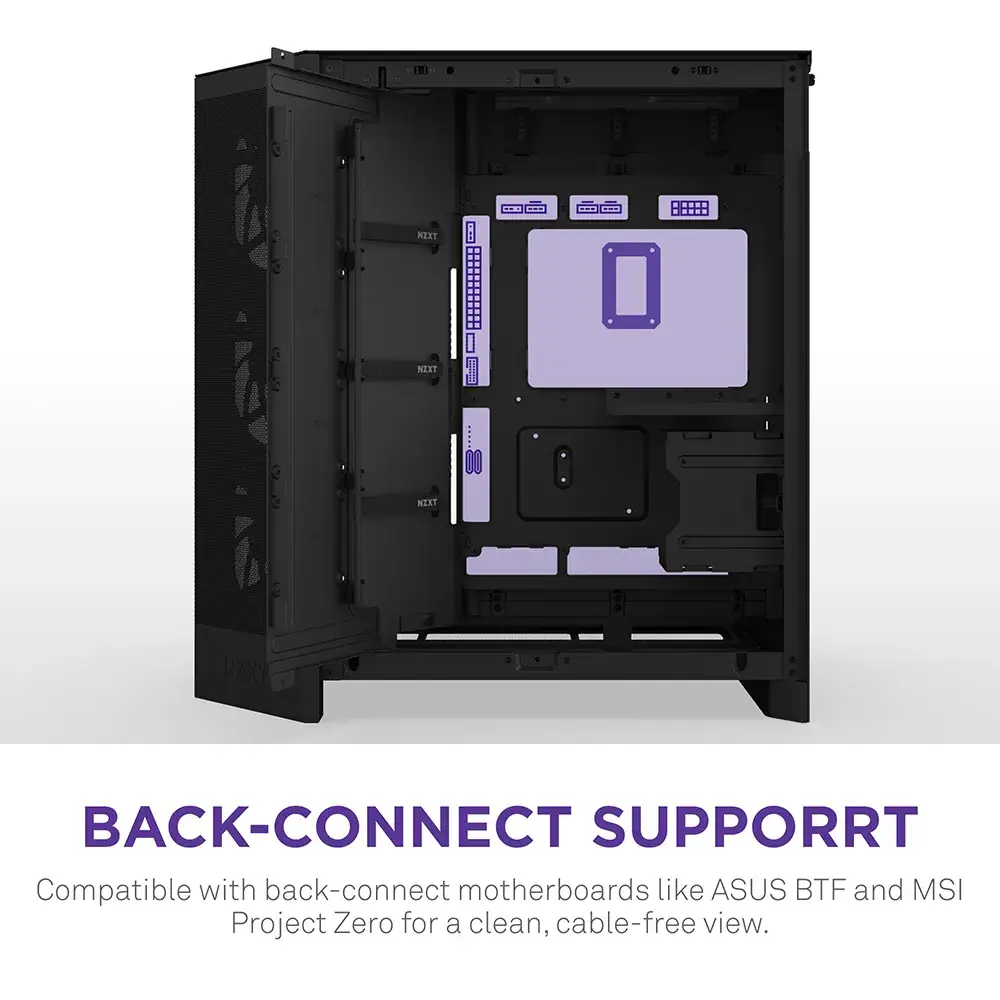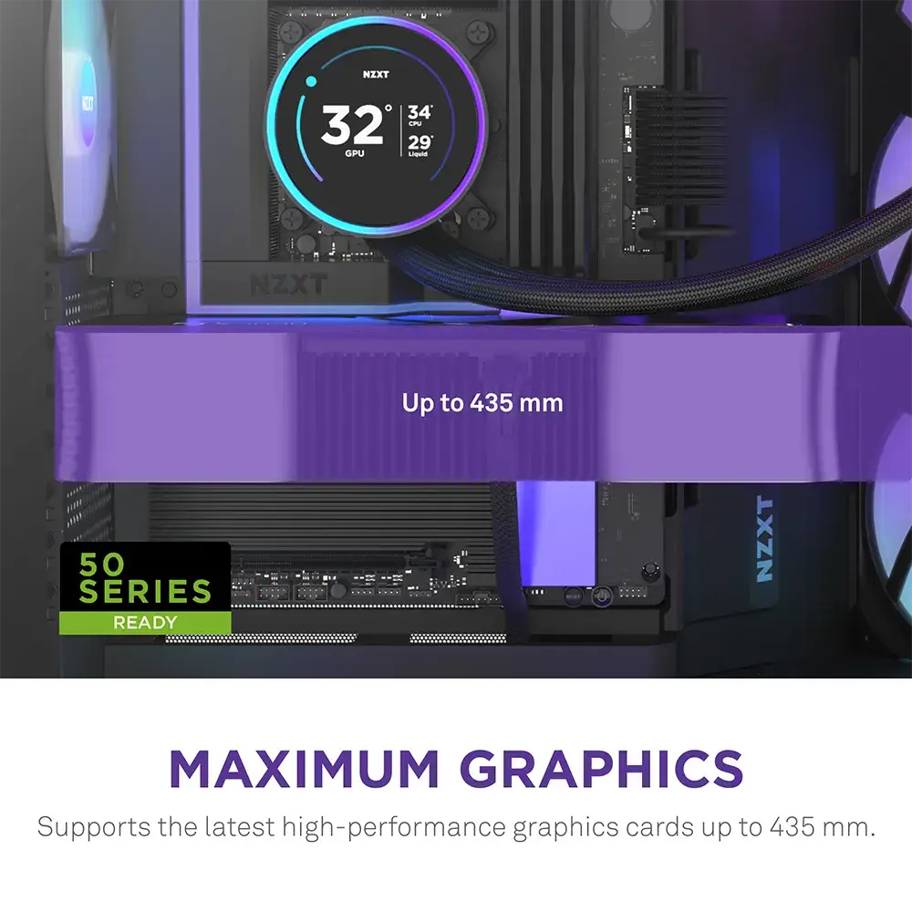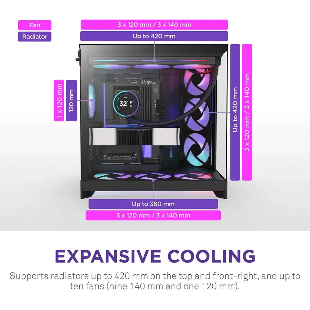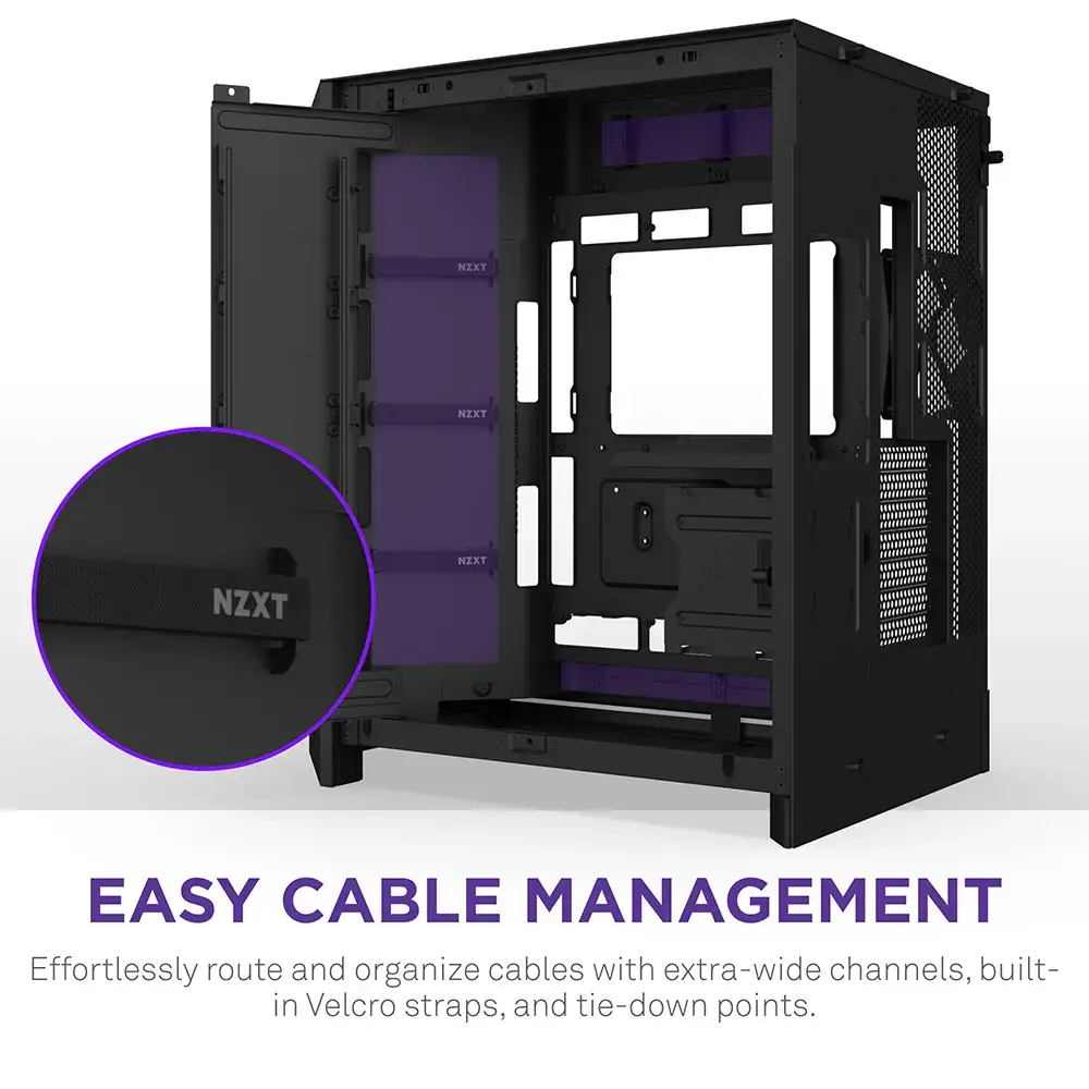 A H9 Flow é uma caixa espaçosa com duas câmaras, concebida para configurações de alto desempenho, com amplo suporte de refrigeração e painéis de vidro envolventes para uma visão ininterrupta da sua configuração.