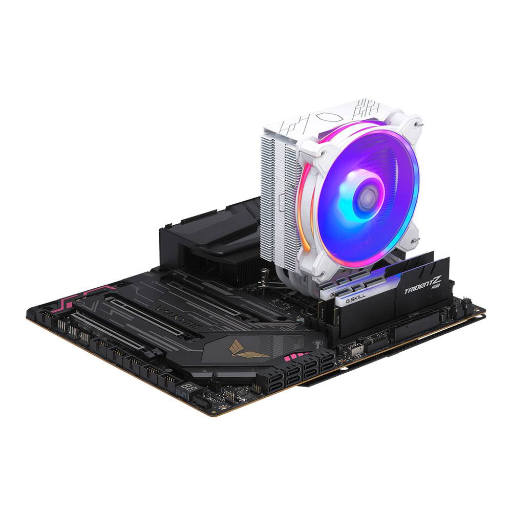 MF120 HALO Fluxo de ar melhorado com uma impressionante iluminação ARGB de circuito duplo. A estrutura híbrida redesenhada mantém a estabilidade sem sacrificar o espaço operacional da ventoinha. PÁS DA VENTOINHA ALARGADAS Pás da ventoinha aumentadas para proporcionar um melhor fluxo de ar e desempenho de arrefecimento. DETEÇÃO AUTOMÁTICA DE ARGB A deteção intuitiva de LEDs fornece automaticamente uma iluminação de espetro ARGB predefinida ou uma personalização ARGB Gen 2 completa através de uma ligação de conetor de 3 pinos. COMPATIBILIDADE COM UMA VASTA GAMA Altura compacta de 154 mm concebida para compatibilidade com chassis amplos sem sacrificar o desempenho. TUBOS DE CALOR BRANCO PURO 4 tubos de calor com acabamento branco proporcionam um arrefecimento e uma estética excepcionais. Especificações: Tubos de calor: 4 Material do dissipador de calor: Aletas de alumínio Dimensões da ventoinha (C x L x A): 120 x 120 x 25 mm Perfis do ventilador: RGB endereçável Quantidade de ventoinhas: 1 Velocidade do ventilador: 650-2050 RPM ± 10% Fluxo de ar do ventilador: 51.88 CFM (máx.) Pressão de ar da ventoinha: 2.89 mmH₂O (máx.) MTTF da ventoinha: >160.000 horas Nível de ruído do ventilador: 27 dBA (máx.) Tipo de rolamento do ventilador: Rolamento Rifle Conector de alimentação do ventilador: 4 pinos (PWM) Tensão nominal do ventilador: 12 VDC Corrente nominal do ventilador: 0.28A Dimensões (C x L x A): 124 x 73 x 154 mm Compatibilidade: Intel: LGA1700, LGA1200, LGA1151, LGA1150, LGA1155, LGA1156 AMD: AM5, AM4