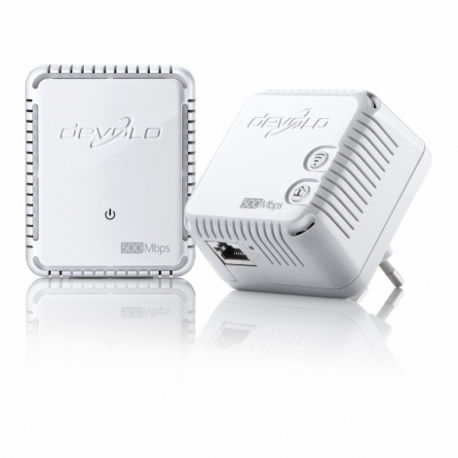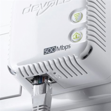 Devolo dLAN 500 WiFi Starter Kit. Tecnologia da conectividade: Wired/Wireless, Interface do host: PowerPlug, Conectividade de série: Ethernet/WLAN. Velocidade máxima de transferência: 500 Mbit/s. Tecnologia de cablagem: 10/100BaseT(X), Ethernet LAN taxa de transferência de dados: 10, 100 Mbit/s, Normas de Comunicações: IEEE 802.11b, IEEE 802.11g, IEEE 802.11n, IEEE 802.1p, IEEE 802.3, IEEE 802.3u, IEEE 802.3x. Padrões Wi-Fi: 802.11b, 802.11g, 802.11n, Máxima faixa indoor: 300m. Tensão: 196-250V,