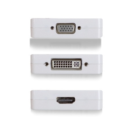 Cor da caixa Branco Comprimento do cabo 0,15 m Conector 1 Mini DisplayPort Conector 2 VGA + HDMI + DVI Modos de vídeos suportados 1080p,2160p Versão DisplayPort 1.2 Género do conector 1 Macho Género do conector 2 Fêmea Forma de factor de conector 1 Em frente/linha recta