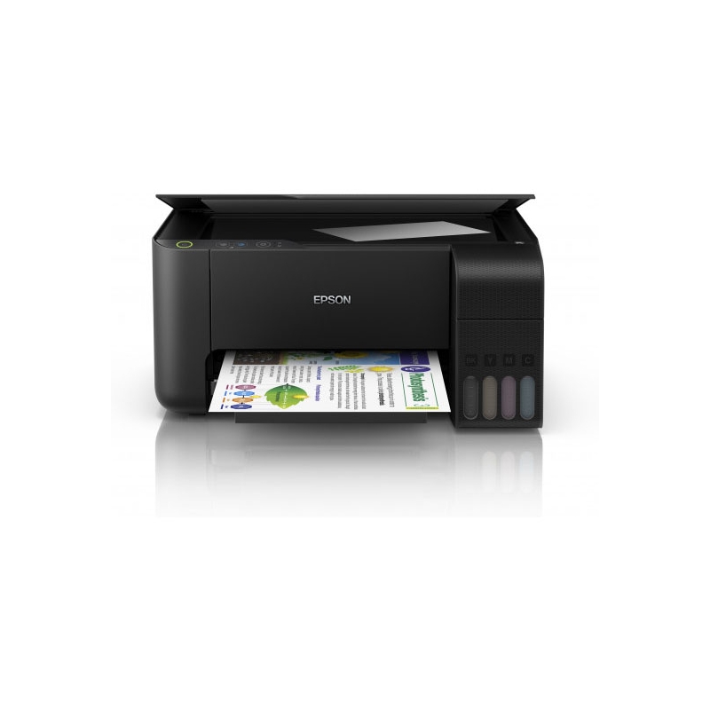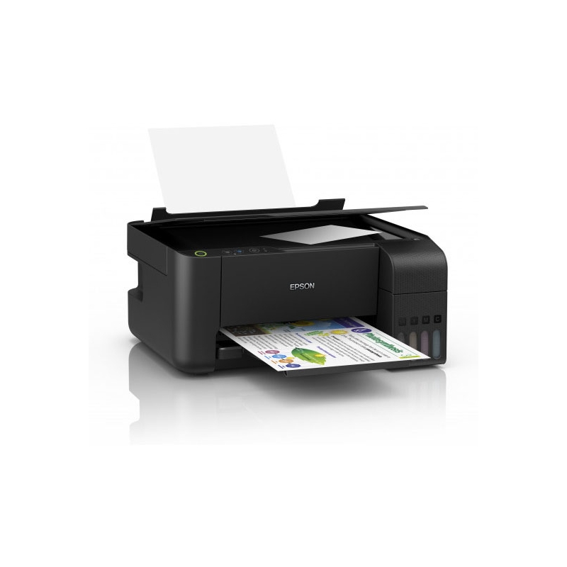 REDUZA OS CUSTOS DE TINTA Esta impressora económica permite poupar em média 90% nos custos da tinta1. Com um conjunto de tinta, poderá produzir umas impressionantes 4500 páginas a preto e 7500 a preto2. CONCEBIDA ESPECIFICAMENTE PARA FACILITAR A UTILIZAÇÃO A gama EcoTank é mais compacta e fácil de utilizar do que nunca. Os tanques frontais foram concebidos para reabastecimentos sem complicações e as garrafas foram concebidas para permitirem a introdução apenas das cores corretas. Graças ao visor de nível de tinta frontal, é fácil ver quando chega finalmente o momento de reabastecer. TRANQUILIDADE Com uma cabeça de impressão Micro Piezo, a gama EcoTank oferece uma solução de impressão fiável que conta com uma garantia de um ano. ESPECIFICAÇÕES TÉCNICA Método de impressão: Cabeça de Impressão Epson Micro Piezo™ Configuração dos injectores: 180 Injectores preto, 59 Injectores por cor Tamanho de gota mínimo: 3 pl, Com tecnologia de gotículas de dimensões variáveis Tecnologia de tinta: Epson Dye Ink Resolução de impressão: 5.760 x 1.440 dpi Categoria: Consumo, Home Office Multifunções: Impressão, Digitalizar, Cópia IMPRESSÃO Velocidade de impressão ISO/IEC 24734: 10 páginas/min Monocromático, 5 páginas/min Cor Velocidade de impressão: 15 páginas/min Cor (papel normal 75 g/m²), 33 páginas/min Monocromático (papel normal 75 g/m²), 69 Segundos por fotografia de 10 x 15 cm (Epson Premium Glossy Photo Paper) DIGITALIZAR Velocidade de digitalização só de uma página (A4 a preto): 200 dpi; , 11 sec. with flatbed scan Velocidade de digitalização só de uma página (A4 a cores): 200 dpi; , 32 sec. with flatbed scan Resolução de digitalização: 600 dpi x 1.200 dpi (horizontal x vertical) Formatos de impressão: BMP, JPEG, TIFF, PDF Tipo de digitalizador: Contact image sensor (CIS) TRATAMENTOS DE SUPORTES/PAPEL Número de tabuleiros de papel: 1 Formatos de papel: C6 (Envelope), B5, A6, A5, A4, Legal, Definido pelo utilizador, 13 x 18 cm, 10 x 15 cm, Letter, N.º 10 (envelope), DL (envelope), 16:9 Duplex: Manual Capacidade da bandeja de papel: 30 Folhas Capacidade da bandeja de papel: 100 Folhas Padrão, 100 Folhas máximo, 20 Folhas para fotografia Processamento de meios: Impressão sem margens GERAL Consumo de energia: 12 W (cópia autónoma, padrão ISO/IEC 24712), 0,4 W (modo de espera), 3,9 W Ready, 0,2 W (desligar) Tensão de alimentação: AC 220 V - 240 V Dimensões do produto: 375 x 347 x 179 mm (Largura x Profundidade x Altura) Peso do produto: 3,9 kg Nível de ruído: 6,5 B (A) com Epson Premium Glossy Photo Paper/modo Photo RPM - 52 dB (A) com Epson Premium Glossy Photo Paper/modo Photo RPM Sistemas operativos compatíveis: Mac OS X 10.6.8 or later, Windows 10, Windows 7, Windows 8, Windows 8.1, Windows Server 2008 R2, Windows Server 2012 R2, Windows Server 2016, Windows Vista, Windows XP SP3, Windows Server 2003 R2, Windows XP Professional x64 Edition Software incluído: Epson Scan Ligações: USB Alimentação de energia: 220 V, 240V Material fornecido: 4 tinteiros individuais de 65 ml (Bk, C, Y, M), Aparelho principal, Cabo de corrente, Manual de instalação, Software (CD), Documento da garantia Colour: Black EcoTank L3110 Esta impressora jato de tinta 3 em 1 é ideal para os ambientes familiares atarefados que pretendem reduzir os custos de impressão. Reduza o custo da tinta numa média de 90% com a Epson L3110 EcoTank¹ sem tinteiros, fornecida com garrafas de tinta de rendimento elevado. Encha o sistema de enchimento de tinta ultraelevado avançado de forma simples e sem complicações graças às garrafas de tinta concebidas especificamente. Os ambientes familiares atarefados vão certamente apreciar esta solução prática que permite esquecer os custos de tinta e não ficar sem tinta. Poupe 90% no custo da tinta Inclui o equivalente a 88 tinteiros Impressão de custo ultrarreduzido Imprima até 4500 páginas a preto e 7500 páginas a cores A nova geração do sistema de enchimento de tinta Desfrute de reabastecimentos sem complicações com as garrafas de tinta avançadas 3 em 1 com tanque com alimentação frontal Imprima, copie e digitalize