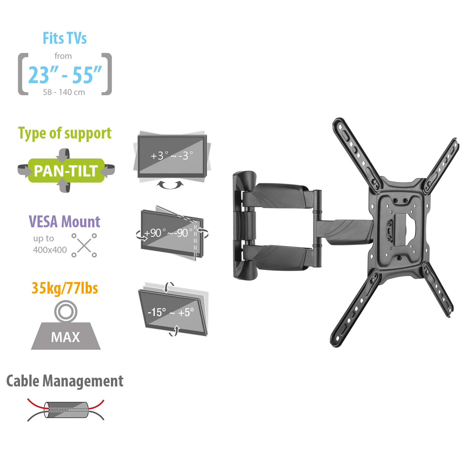 O Suporte de Parede L para TV de Rotação Fácil EW1525 é a solução ideal para montar a sua TV (23 até 55 polegadas, peso máx. 35 Kg) na parede.