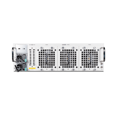 8x 100GE/40GE QSFP28 slots and 18x 25GE/10GE SFP28 slots, 2 x GE RJ45 Management Ports, SPU NP7 and CP9 hardware accelerated, and 2 AC power supplies
