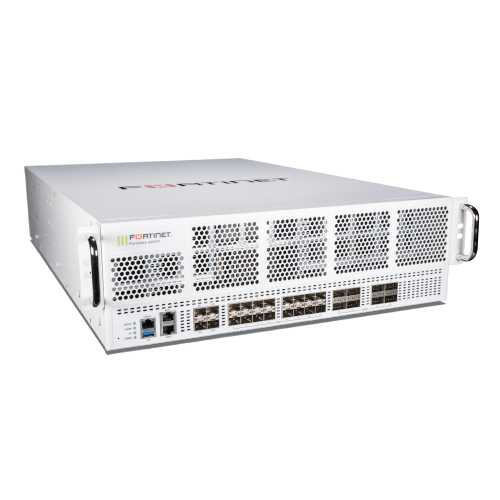 The FortiGate 4200F series delivers high performance next generation firewall (NGFW) capabilities for large enterprises and service providers. With multiple high-speed interfaces, high-port density, and high-throughput, ideal deployments are at the enterprise edge, hybrid data center core, and across internal segments. Leverage industry-leading IPS, SSL inspection, and advanced threat protection to optimize your network performance. Fortinet’s SecurityDriven Networking approach provides tight network integration to the new security generation. FG-4200F | Fortinet FortiGate-4200F NG Firewall The FortiGate 4200F series delivers high performance next generation firewall (NGFW) capabilities for large enterprises and service providers. With multiple high-speed interfaces, high-port density, and high-throughput, ideal deployments are at the enterprise edge, hybrid data center core, and across internal segments. Leverage industry-leading IPS, SSL inspection, and advanced threat protection to optimize your network performance. Fortinet’s SecurityDriven Networking approach provides tight network integration to the new security generation. Features 8x 100GE/40GE QSFP28 slots and 18x 25GE/10GE SFP28 slots, 2 x GE RJ45 Management Ports, SPU NP7 and CP9 hardware accelerated, and 2 AC power supplies Security Identifies thousands of applications inside network traffic for deep inspection and granular policy enforcement Protects against malware, exploits, and malicious websites in both encrypted and non-encrypted traffic Prevent and detect against known and unknown attacks using continuous threat intelligence from AI-powered FortiGuard Labs security services Performance Delivers industry’s best threat protection performance and ultra-low latency using purpose-built security processor (SPU) technology Provides industry-leading performance and protection for SSL encrypted traffic Networking Delivers advanced networking capabilities that seamlessly integrate with advanced layer 7 security and virtual domains (VDOMs) to offer extensive deployment flexibility, multi-tenancy and effective utilization of resources Delivers high-density, flexible combination of various high-speed interfaces to enable best TCO for customers for data center and WAN deployments Management Includes a management console that is effective, simple to use, and provides comprehensive network automation and visibility. Provides Zero Touch Integration with Security Fabric’s Single Pane of Glass Management Predefined compliance checklist analyzes the deployment and highlights best practices to improve overall security posture