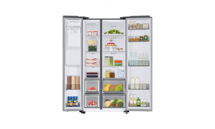 O design combina harmoniosamente com a sua cozinha, enquanto a ampla zona de refrigeração torna mais fácil o armazenamento de qualquer tipo de alimento. ESPECIFICAÇÕES Classificação energética D Tipo de frigoríficoSide by Side Capacidade bruta do frigorífico415 litros Capacidade bruta do congelador237 litros Capacidade bruta total652 litros Capacidade útil do frigorífico402 litros Capacidade útil do congelador207 litros Capacidade útil total609 litros TecnologiaSmart Conversion Twin Cooling Plus Precise Cooling Compressor Digital Inverter No Frost Tipo de indicadorDisplay interior Alarme porta aberta Funções do dispensadorÁgua + gelo Abastecimento do dispensadorDepósito Capacidade do depósito4,5 litros FRIGORÍFICO Espaço dos compartimentosGarrafeira Iluminação InteriorLED ConectividadeNão Nível de ruído37 dB PuxadorIntegrado Dimensões (largura x altura x profundidade)91,2 x 178 x 71,6 cm Consumo energético257Consumo energético kWh/anoUnidade GARANTÍA Garantía 2 anos