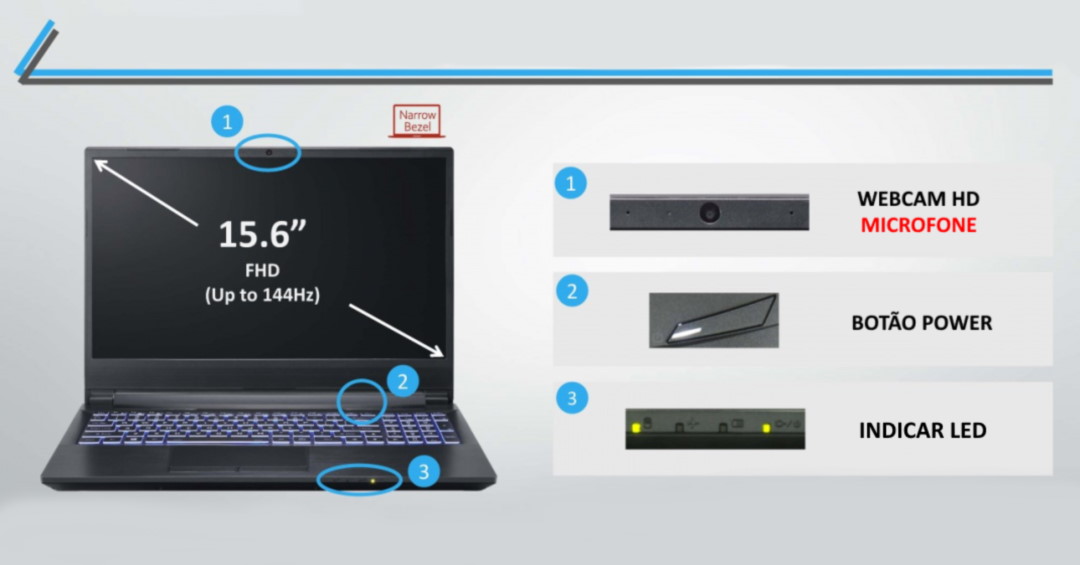 i7 10870H Octa Core RTX 3060 6GB 16GB RAM 1TB SSD SATA + 512GB SSD M.2 15.6" Full HD 144Hz Módulo Wi-Fi Intel AX200, 802.11AX 2400Mhz (Wi-Fi 6) + Bluetooth 5.1 Sem Sistema Operativo