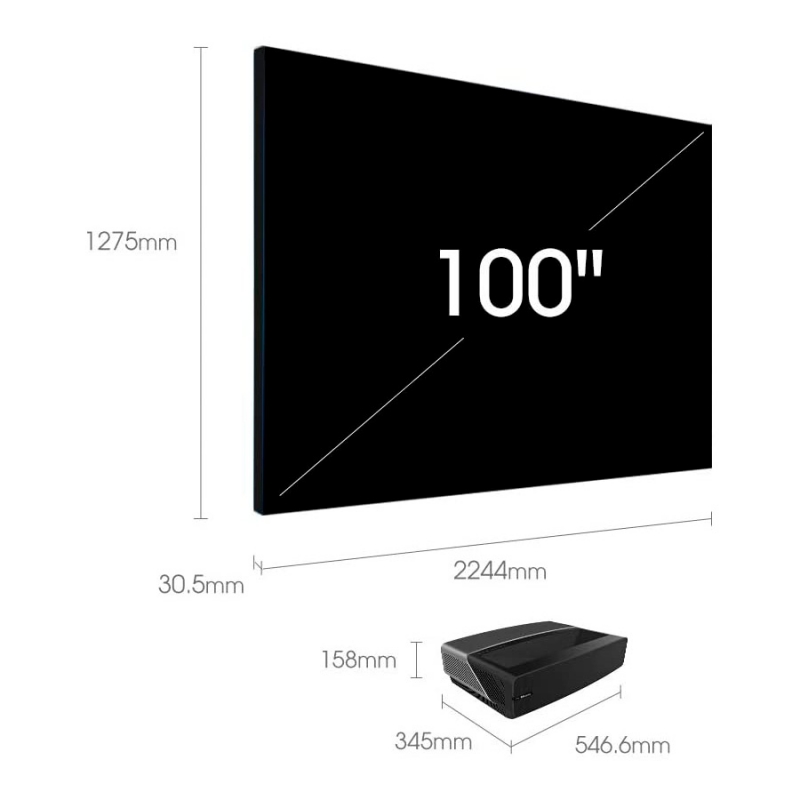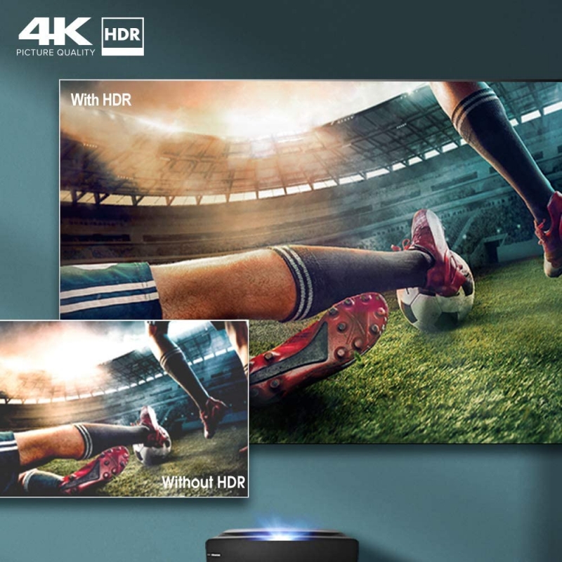 A TV Laser de alcance ultracurto projeta uma colorida e brilhante imagem 4K para uma tela com rejeição de luz ambiente (ALR), sendo feita para ver em qualquer divisão da casa.