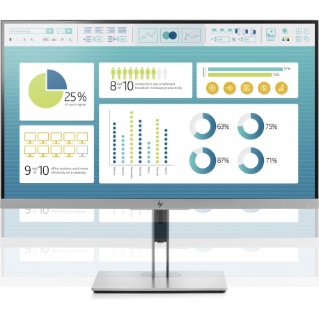 HP EliteDisplay E273. Tamanho do ecrã na diagonal (pol.): 68,6 cm (27"), Resolução: 1920 x 1080 pixels, Tipo de HD: Full HD, Tecnologia de apresentação: IPS, Visor: LED, Tempo de resposta (típico): 5 ms, Luminosidade: 250 cd/m², Proporção de imagem nativa: 16:9, Ângulo de visão (horizontal): 178°, Ângulo de visão (vertical): 178°. Hub USB integrado, Versão hub USB: USB 3.0 (3.1 Gen 1). Suporte VESA, Limites de ajuste da altura. Cor da caixa: Preto, Prateado