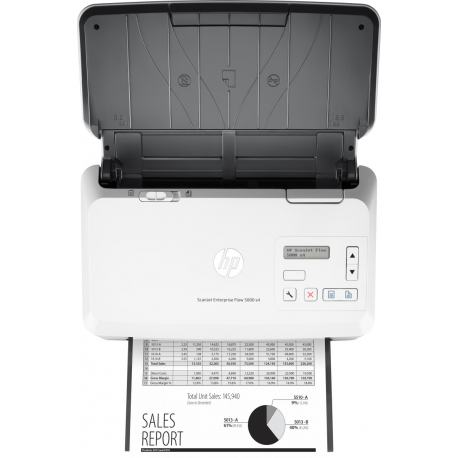 HP Enterprise Flow 5000 s4, Scanjet. Formato máximo de digitalização: 216 x 3100 mm, Resolução óptica de digitalização: 600 x 600 DPI, Profundidade de entrada de cor: 24 bit. Tipo de scanner: Alimentação por folhas, Cor da caixa: Branco, Display: LCD. Tip