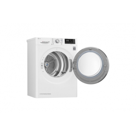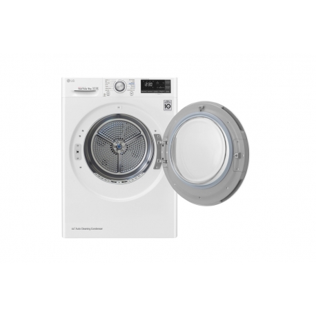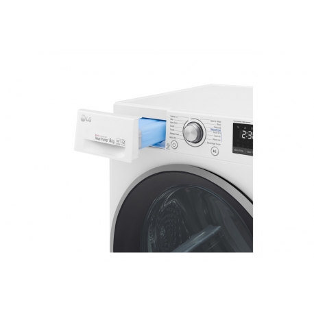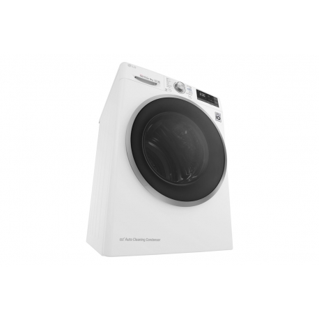 Máquina de secar roupa com capacidade de 8 kg e tecnologias Dual Inverter Heat Pump, Eco Hybrid e Allergy Care, condensador com limpeza automática, filtro duplo, sensor de secagem, tecnologia SmartThinQ com conetividade Wi-Fi, visor LED, classe de eficiên
