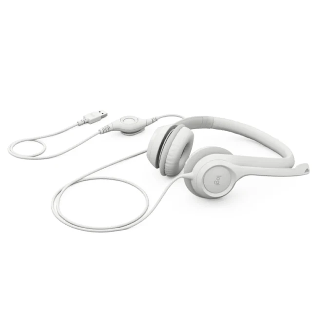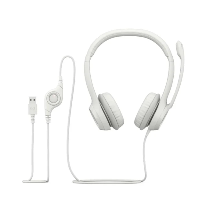 Auricular USB Logitech H390 com microfone com cancelamento de ruído - branco Com áudio digital melhorado e controlos em linha. Experimente videochamadas nítidas com uma ligação USB simples e um microfone com cancelamento de ruído. Controlos em linha para ajustar o volume ou silenciar sem interromper as chamadas. Drivers ajustados para áudio digital melhorado.