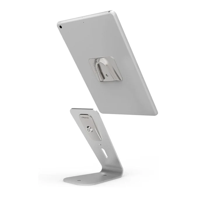 The HoverTab comprises two parts: first, an adhesive steel plate that attaches to the back of your iPad, Galaxy Tab, smartphone, etc. Second, the stand itself, standing at 6" high and sloped at a 60-degree angle for optimal viewing. Its 4" base provides stable balance regardless of the connected device. Transform your tablet into an information stand with HoverTab. Keyed lock and industrial strength 3M adhesive allows you to use this stand in any environment, mounted on the Counter or to the Wall. HoverTab works with any tablet or iPad and keeps them secured on the stand and has a keyed release system for off stand use. Elegant and simple to use, the HoverTab is the effective tablet holder that doesn't compromise aesthetics. HoverTab stand includes: HoverStand Base HoverTab 3M plate Set of keys Compatible: All iPad models Samsung Galaxy Tab A and S models Microsoft Surface Pro and Go tablets Acer tablets Asus tablets Huawei tablets Lenovo tablets Xiaomi Pads and many others Specifications Products: MacLocks HoverTab Security Tablet Lock Stand Silver Mobile device type: Mobile phone/Smartphone, Tablet/UMPC Type: Passive holder Proper use: Indoor Product colour: Silver
