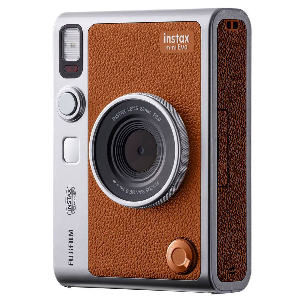 DESIGN DO PRODUTO A instax mini Evo representa uma nova geração de tecnologia analógica, combinando um design clássico com mais formas de criar. 100 EXPRESSÕES DIFERENTES Use os seletores de lente e de filme em conjunto para se expressar de 100 modos diferentes. Olhe o monitor enquanto cria uma imagem que expresse a sua inspiração. A mini Evo desperta novas ideias, revelando várias formas de se expressar! GUARDAR IMAGENS IMPRESSAS As fotos impressas capturadas com a câmara podem ser armazenadas no seu smartphone. As fotos impressas podem ser guardadas como imagens com uma moldura instax no seu smartphone. Partilhe a sua foto favorita nas redes sociais! DISPARO REMOTO Use o seu smartphone como controlo remoto. Faça disparar o obturador da câmara através do controlo remoto do smartphone. Especificações: Câmara: Sensor de imagem: CMOS de 1/5 polegadas com filtro de cores primárias Pixels efetivos: 2560 x 1920 Media de armazenamento: Memória interna, cartão de memória microSD/microSDHC Capacidade de armazenamento: Aproximadamente 45 imagens na memória interna, aproximadamente 850 imagens por cada gigabyte em cartão de memória microSD/microSDHC Método de gravação: Exif Ver 2.3 em conformidade com DFC Distância de foco: f = 28 mm (equivalente a filme de 35 mm) Abertura: F2.0 Foco automático: AF único (com iluminador AF) Distância de disparo: 10 cm a ∞ Velocidade do obturador: 1/4 de segundo a 1/8000 de segundo (troca automática) Sensibilidade de disparo: ISO100 a 1600 (troca automática) Controle de exposição: AE programada Compensação de exposição: -2,0 EV a +2,0 EV (incrementos de 1/3 EV) Fotometria: Medição de 256 segmentos TTL, multimedição Equilíbrio de brancos: Automático, Refinado, Sombra, Fluorescente 1, Fluorescente 2, Fluorescente 3, Incandescente Flash: Flash automático / Flash compulsório / Flash suprimido Alcance de disparo com flash: Aproximadamente 50 cm a 1,5 m Temporizador automático: Aproximadamente 2 segundos / aproximadamente 10 segundos Efeitos de imagem: 10 efeitos de lente, 10 efeitos de filme Total de 100 efeitos ao multiplicar os efeitos acima Impressão: Filme usado: Filme instantâneo FUJIFILM "instax mini" (vendido separadamente) Número de disparos: 10 disparos/pacote Tamanho do filme: 86 mm x 54 mm Tamanho da tela: 62 mm x 46 mm Número de pixels da impressão: 1600 x 600 pontos (800 x 600 pontos quando impresso a partir do aplicativo para smartphone) Resolução de impressão: 25 pontos/mm x 12,5 pontos/mm (635 x 318 dpi, espaçamento de pontos de 40 x 80 μm) 12,5 pontos/mm quando impresso a partir do aplicativo para smartphone (318 dpi, espaçamento de pontos de 80 μm) Interface: Conformidade padrão: Bluetooth Ver. 4.2 (BLE) Gradação de impressão: Gradação RGB de 256 cores Formato de imagem suportado para impressão: Imagens JPEG fotografadas com esta unidade Tempo de saída da impressão: Aproximadamente 16 segundos Função de impressão: Imagens na memória interna e imagens no cartão de memória podem ser impressas Reimpressão: A reimpressão é possível para imagens armazenadas no histórico de impressão (até 50 imagens) Outros: Funções conectadas ao aplicativo para smartphone: Função de impressão de imagem de smartphone, função de disparo remoto, função de transferência de imagem impressa, função de atualização de firmware Monitor LCD: TFT colorido de 3,0 polegadas Número de pixels: Aproximadamente 460.000 pontos Interface externa: Micro USB Micro-B (apenas para carga) Fonte de energia: Bateria de íons de lítio (modelo integrado: não removível) Número possível de imagens impressas: Aproximadamente 100 (com bateria cheia) Tempo de carga: Aproximadamente 2 a 3 horas Dimensões: 87 mm x 122,9 mm x 36 mm (excluindo partes salientes) Peso: Aproximadamente 285 g