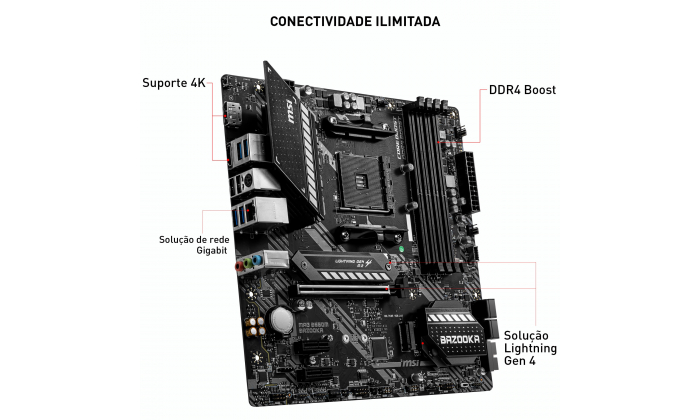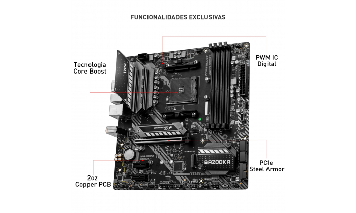 CONQUISTE O CAMPO DE BATALHA A série MAG teve origem em rigorosos testes de qualidade e foi desenhada para ser um símbolo de robustez e durabilidade. Focada em fornecer a melhor experiência do utilizador, a série MAG possui um processo de instalação simples, juntamente com uma interface amigável, tornando-a a melhor escolha para jogadores iniciantes. DESIGN DE HARDWARE PREMIUM Com anos de experiência, a MSI já está habituada à construção de motherboards de alto desempenho. As nossas equipas de R&D e engenharia conferem inúmeros projetos, avaliaram uma ampla seleção de componentes de alta qualidade e desenvolveram produtos para confiabilidade, mesmo sob condições extremas. SOLUÇÃO TÉRMICA PARA MAIS NÚMEROS E DESEMPENHO MAIS ALTO Com os processadores de mais núcleos, o design térmico e de energia é mais importante para garantir que a temperatura continue mais baixa. O dissipador de calor PWM estendido da MSI e design de circuito aprimorado garantem que a CPU de alto desempenho funcione a toda velocidade com as motherboards MSI. DESEMPENHO MELHORADO As motherboards MSI de alto desempenho são carregadas com recursos avançados e a mais recente tecnologia para superar qualquer desafio em questão, independentemente de ser um jogador, um prosumer ou um entusiasta de PC. CONECTIVIDADE As motherboards MSI são construídas com uma variedade de conectores para satisfazer os jogadores. Áudio melhorado, recursos avançados de rede LAN, USB e Mystic Light tornam qualquer experiência de jogo imersa. OTIMIZE O TRÁFEGO DE JOGOS ONLINE PARA BAIXA LATÊNCIA O MSI LAN Manager classifica e prioriza automaticamente as aplicações sensíveis à latência para jogos online, oferece a melhor experiência de jogo online com baixa latência. ESPECIFICAÇÕES Processador: Suporta AM4 socket 3rd Geração AMD Ryzen™ e futuro AMD Ryzen™ com update BIOS Chipset: Intel® B550 Memória RAM: 4x DDR4 memory slots, suporta até 128GB Suporta DDR4 1866/ 2133/ 2400/ 2667/ 2800/ 2933/ 3000/ 3066/ 3200 MHz by JEDEC Suporta DDR4 2667/ 2800/ 2933/ 3000/ 3066/ 3200/ 3466/ 3600/ 3733/ 3866/ 4000/ 4133/ 4266/ 4400+ MHz by A-XMP OC MODE Arquitetura de memória Dual Channel Suporta memória non-ECC UDIMM Suporta memória ECC UDIMM Suporta memória un-buffered Slots de Expansão: 1 x PCIe 3.0/ 4.0 x16 slot (from CPU) 2 x PCIe 3.0 x1 slots (from PCH) Armazenamento: AMD B550 Chipset 4x SATA 6Gb/s ports 2x M.2 slots (Key M) M2_1 slot (from AMD processor) Suporta PCIe 4.0/ 3.0 x4 Suporta SATA 6Gb/s Suporta 2242/ 2260/ 2280 M2_2 slot (from AMD B550 chipset) Suporta PCIe 3.0x4 Suporta 2242/ 2260/ 2280 LAN: 1x Realtek® RTL8111H Gbps LAN Controller Áudio: Realtek® ALC892 Codec 7.1-Channel High Definition Audio Portas USB: AMD B550 Chipset 3x USB 3.2 Gen 1 5Gbps ports (1 Type-C internal connector, and 2 ports are available through the internal USB 3.2 Gen 1 5Gbps connector) 6x USB 2.0 ports (2 Type-A ports on the back panel, 4 ports through the internal USB 2.0 connectors) AMD Processor 4x USB 3.2 Gen 1 5Gbps Type-A ports (4 Type-A ports on the back panel) Conectores I/O: 1x 24-pin ATX main power 1x 8-pin ATX 12V power 4x SATA 6Gb/s 2x M.2 slots (M-Key) 1x USB 3.2 Gen 1 5Gbps Type-C port 1x USB 3.2 Gen 1 5Gbps (supports additional 2 USB 3.2 Gen 1 5Gbps ports) 2x USB 2.0 (supports additional 4 USB 2.0 ports) 1x 4-pin CPU fan 1x 4-pin water-pump fan 3x 4-pin system fan 1x Front panel audio 2x System panel 1x Serial port 1x Chassis Intrusion 2x 4-pin RGB LED 2x 3-pin RAINBOW LED 1xTPM module 1x Clear CMOS jumper Portas Painel Traseiro: USB 3.2 Gen 1 5Gbps Type A PS/2 Combo Port Gigabit LAN Port Flash BIOS Button DisplayPort HDMI USB 2.0 port USB 3.2 Gen 1 5Gbps Type A HD Audio Connectors Dimensões: Formato micro-ATX , 24.4 cm x 24.4 cm