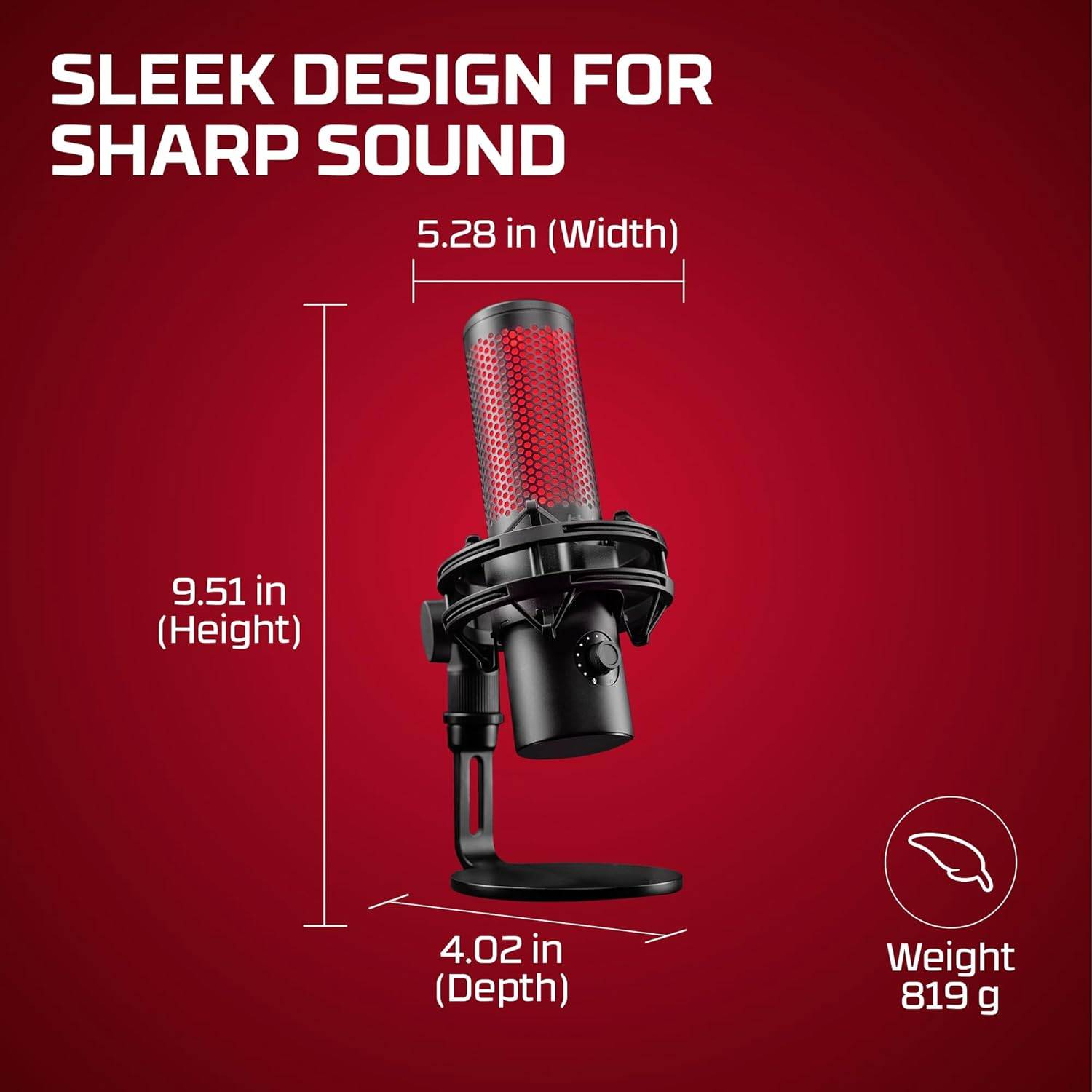 Impressionante iluminação vermelho HyperX com efeitos dinâmicos para visual atraente; Máxima personalização de modos de som e iluminação com o software NGENUITY; Gravação em alta resolução com qualidade estúdio oferece gravação de 24 bits e 96 kHz; Sensor de toque para silenciar com indicador de LED; Quatro padrões polares selecionáveis: Estéreo, Omnidirecional, Cardioide, Bidirecional; Fácil ajuste do controlo de ganho rodando o botão giratório; Adaptador versátil para configurações com rosca d