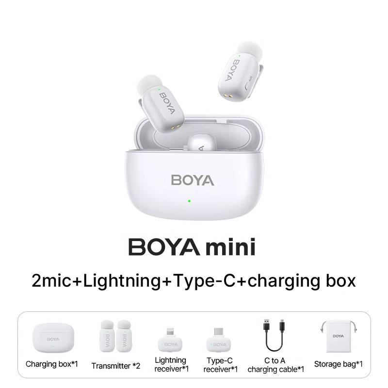 Kit BOYA composto por dois microfones de lapela sem fios + recetor Type-C + Lightning; Incrivelmente pequenos e leves, não vai sentir que os está a usar; Captação de áudio 2.4GHz Wireless de alta qualidade da BOYA; Resolução de 48 kHz/16 bits e uma resposta de frequência de 20 Hz-20 kHz; Sistema Plug & Play: Basta ligar, emparelhar e começar a usar; Cancelamento de ruído de 3 níveis, para conversas mais limpas sem ruído de fundo; O micro possui 3 modos de alteração de voz divertidos para express