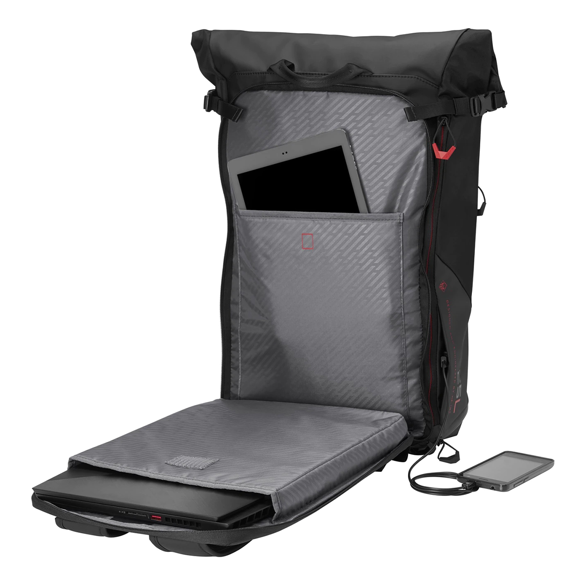 FÁCIL ACESSO, PROTEGIDO POR RFID Bolso com fecho de correr, de fácil acesso para artigos essenciais com prevenção de roubo com bloqueio RFID. PROTECÇÃO RESISTENTE À ÁGUA Proteja o seu equipamento dos elementos com tecido resistente à água. VIAGEM FACILITADA Utilize a conveniente pega do carrinho de passagem, que se empilha em segurança em cima da sua bagagem. MANTENHA-SE LIGADO Mantenha-se ligado com a ficha USB incorporada para carregar o seu telefone em movimento. HIDRATAÇÃO DE FÁCIL ACESSO Mantenha a sua garrafa de água ao alcance da mão com uma conveniente bolsa lateral. PONHA TUDO EM CIMA, LEVE TUDO Desenho do topo do rolo que lhe permite transportar mais. CONCEBIDO PARA O CONFORTO Desfrute do conforto com as alças ergonómicas para ombros e o painel traseiro moldado por compressão. Especificações: Compatibilidade: Portáteis de até 15.6"
