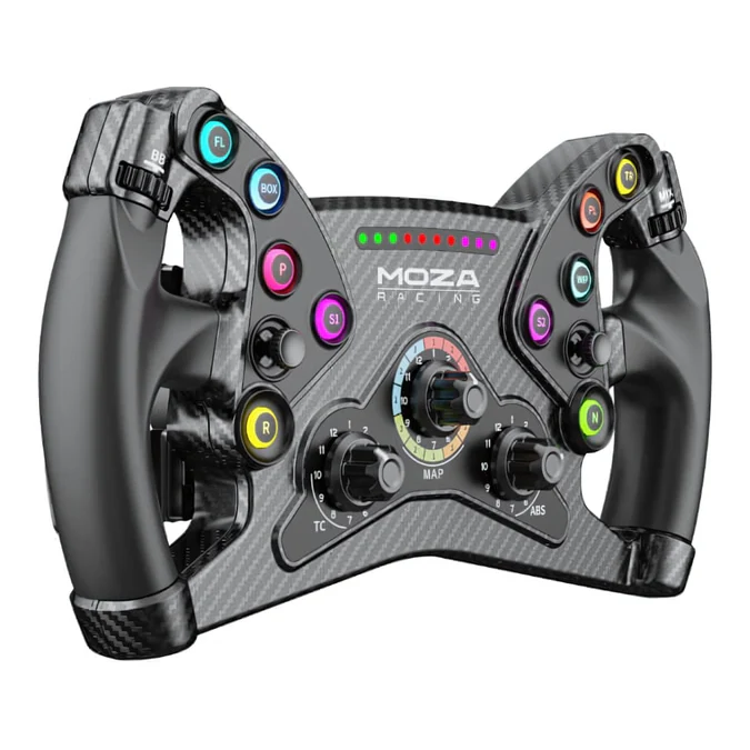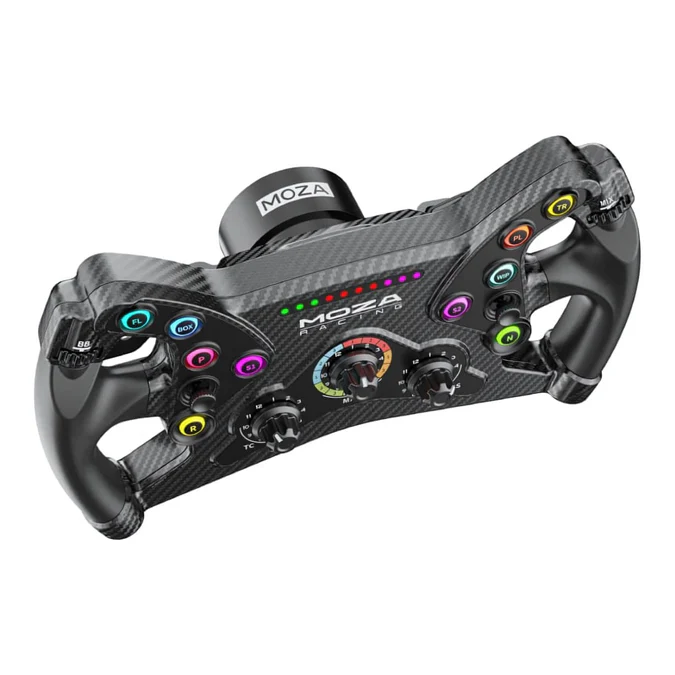 300mm Butterfly Style GT Wheel Programmable Short Travel RGB Buttons Hall Sensor Magnetic Paddle with Dual Clutch An Open Ecosystem MOZA Quick Release MOZA Pit House Control Suite Carbon Fiber Reinforced Composites 3 Rotary Encoders 2 Thumb Encoders 2 Joysticks