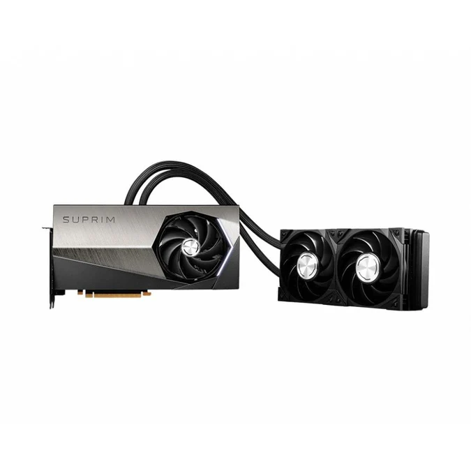 MSI GeForce RTX 4090 Suprim Liquid X 24G 24GB GDDR6X Graphics Card RTX 4090 SUPRIM L CHANGE THE GAME Find prestige from SUPRIM LIQUID with its high-quality materials, bold style, and evolutionary hybrid thermal design. SUPRIM LIQUID bears an exquisite exterior design that reflects its performance capabilities. High-quality materials and manufacturing are exemplified with an aluminum metal cover Angle-beveled edges with light-gold colored polish Octagon-shaped fan cutout and an illuminated chev