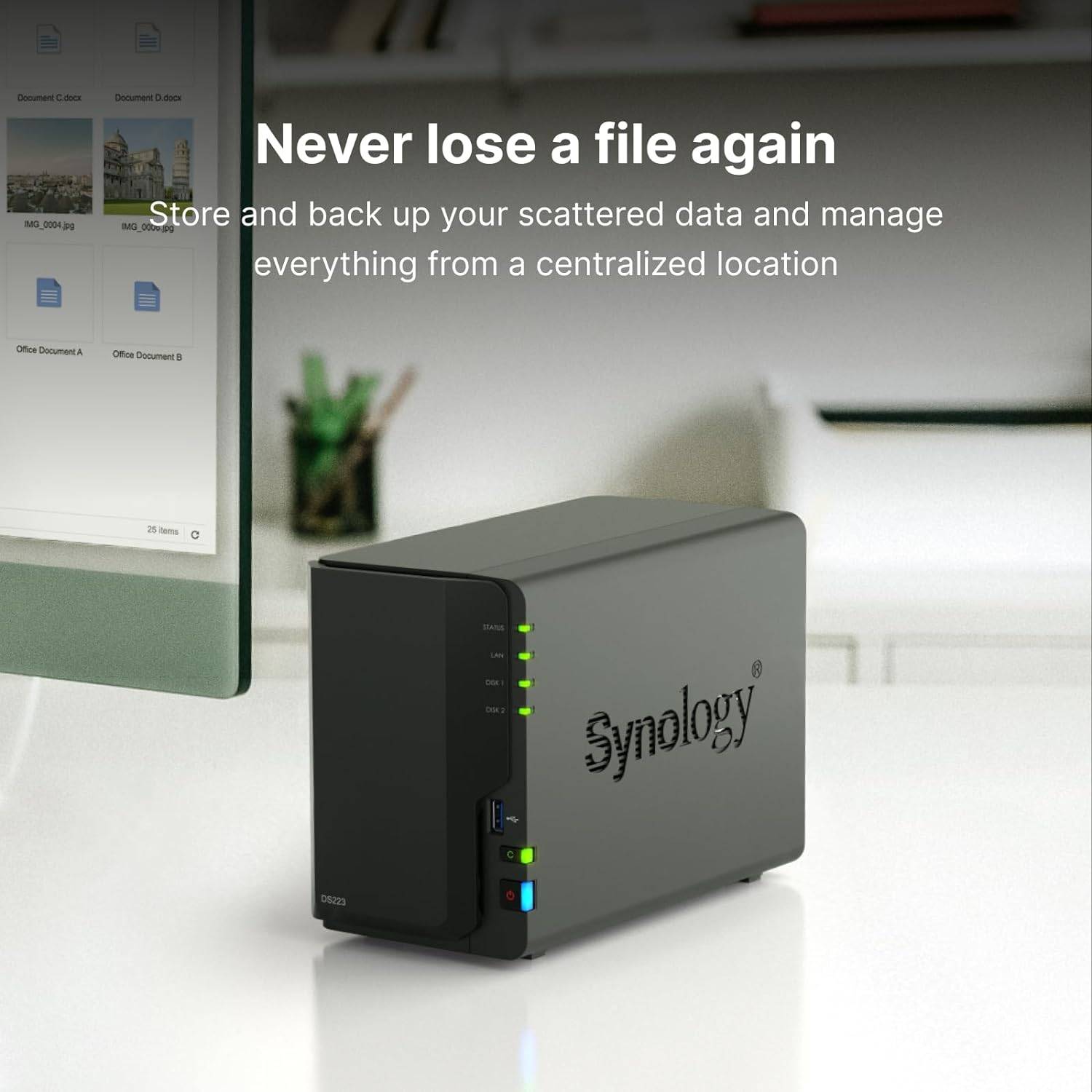 Nuvem privada segura: Permitir em qualquer lugar, a qualquer momento, o acesso a um máximo de 36 TB de dados.(1) Centro de backup simples: Crie cópias de reserva dos seus documentos e meios de comunicação para uma fácil recuperação. Operação eficiente: Mantenha baixo o consumo de energia com apenas 17.3 W durante o funcionamento.