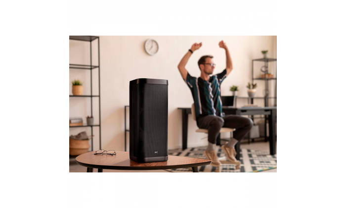 Portátil - Graças ao seu pequeno tamanho, peso leve e bateria incluída, pode facilmente levar a sua coluna para onde quiser. Fácil Emparelhamento - Velocidade incrível no emparelhamento de dispositivos. Use o NFC para estabelecer comunicações sem fios entre o dispositivo de áudio e a coluna, simplesmente tocando-os. Stereo Sem Fios (TWS) - Crie facilmente o seu sistema de som stereo sem fios, emparelhando duas colunas usando a tecnologia TWS. Efeito de Subwoofer - Usando a mais