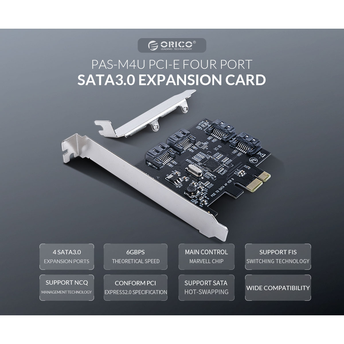Placa de expansão PAS-M4U PCI-E de quatro portas sata 3.0. 4 Portas de expansão SATA 3.0 Velocidade teórica de 6 Gbps Chip de controlo principal da Marvell Suporta a tecnologia Fis Switching Suporte a tecnologia de gerenciamento de NCQ Conform PCI Express 2.0 Specification Suporte SATA Hot-swapping Ampla Compatibilidade