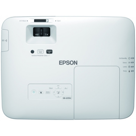 Epson EB-2255U. Luminosidade do projector: 5000 ANSI lumens, Tecnologia da projecção: 3LCD, Resolução nativa do projetor: WUXGA (1920x1200). Vida útil das lâmpadas: 5000 h, Potência das lâmpadas: 300 W, Duração da lâmpada (modo económico): 10000 h. Foco: Manual, Comprimento focal: 23 - 38,4 mm, Amplitude de abertura (F-F): 1,5 - 2. Processamento de vídeo: 10 bit, Modos de cor (2D): Cinema, Dinâmica, Modos de cor de vídeo: Blackboard, Dinâmica, Foto, Presentation, sRGB. Ethernet LAN taxa de trans