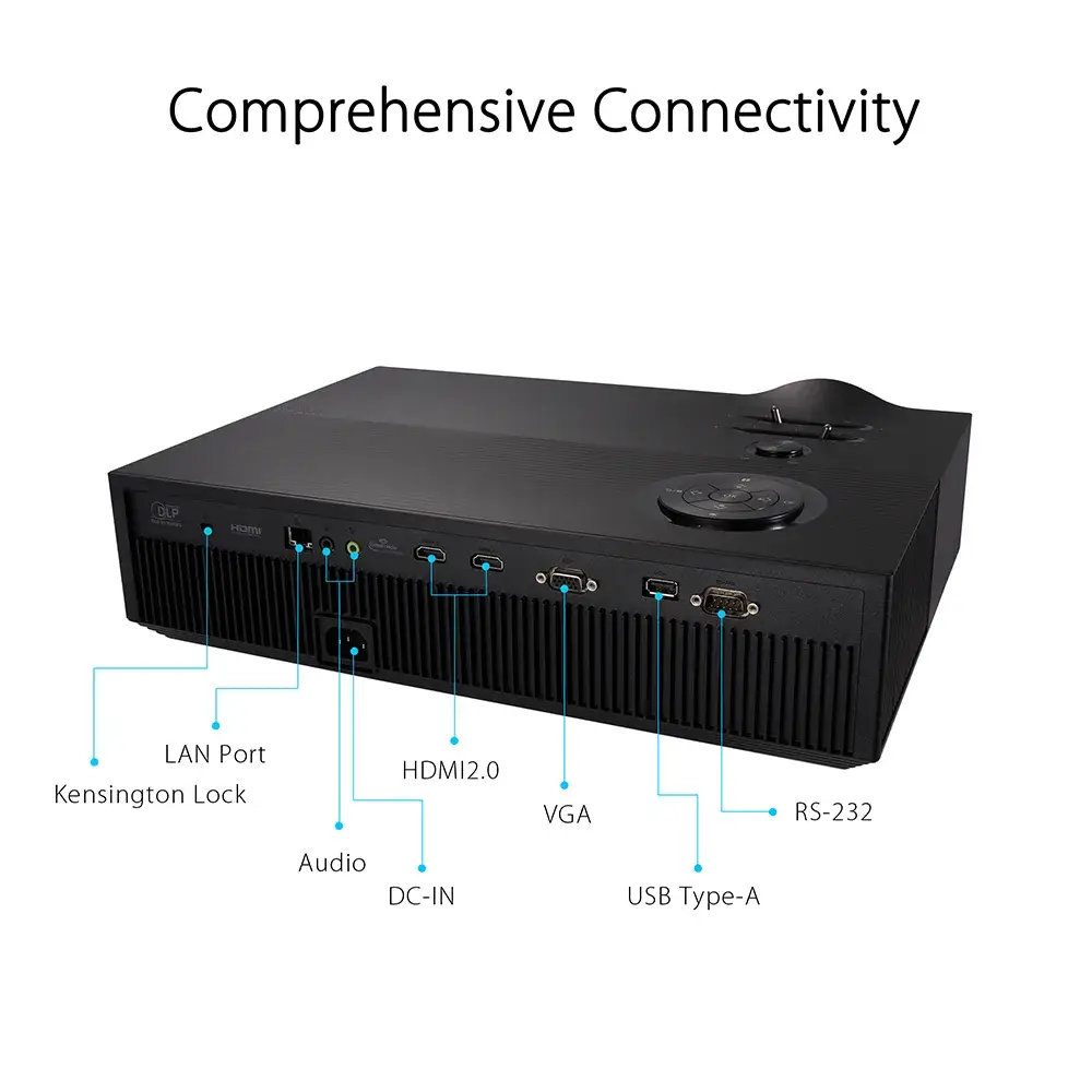 Projetor LED Full HD 1080p; Brilho de 3000 lumens; Cobertura de cores 125 % Rec.709 / sRGB; Taxa de atualização até 120 Hz; Projeção de 40″ a 200″; Conectividade HDMI, VGA, USB‑A e áudio; Altifalante integrado 10 W; Suporte a Crestron RoomView® Express; Ideal para cinema, jogos e apresentações; Design elegante e compacto para qualquer espaço.