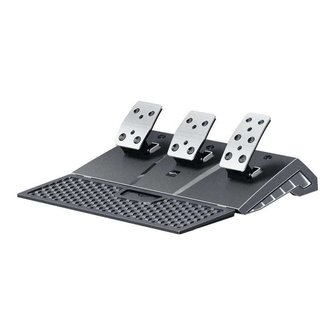 The PXN V9 Gen 2 offers physical switching between 270° and 900° steering rotation, allowing you to customise the handling based on the game or simulation. At 900°, the wheel replicates a full 2.5-turn range, accurately reflecting the behavior of real-world steering systems. The 16-bit magnetic encoder ensures ultra-precise wheel movement recognition, while the dual vibration motors dynamically adjust vibration strength in real-time, replicating vehicle feedback, road textures, and cornering forces with exceptional clarity. Immerse yourself in race-day aesthetics and comfort with the V9 Gen 2’s 28cm professional-grade wheel, wrapped in soft-touch TPU rubber grips for a secure, sweat-resistant hold during long racing sessions. The Formula-style paddle shifters, made from durable ABS material, provide smooth and responsive gear changes, offering that authentic racing feel at your fingertips. Adding a touch of futuristic flair, dual RGB light bars on either side of the wheel provide real-time visual feedback of throttle and brake pressure, enhancing immersion while elevating your gaming setup’s aesthetics. The included hall magnetic linear pedal set delivers superior responsiveness by detecting precise pressure variations for lifelike throttle, brake, and clutch input. A folding textured surface and anti-slip base keep the pedal set firmly in place, providing a stable platform even during aggressive racing maneuvers. With plug-and-play USB connectivity, the PXN V9 Gen 2 is compatible with a wide range of platforms (refer to supported systems), ensuring seamless integration with your favorite racing titles across PC and consoles. Features Switch between 270 and 900 degrees of steering wheel rotation 16-bit Magnetic Encoder for more precise movement of the wheel in real time High precision racing dual-paddle design 6+1 Gear shifter for precise control Hall magnetic linear 3 foot pedal Built-in dual vibration motors for realism Support for multiple platforms Cyber style RGB lighting effect Wired connection with plug and play Specifications Base Sensor: 16-bit Connection Type: Wired Connection Working Voltage: 5V Working Current: 80mA during normal use, <150mA during vibration, <500mA during controller guidance Usage Temperature: 10 – 40°C Usage Humidity: 20 – 80% Colour: Black Product Dimensions(Steering Wheel): 28 x 34 x 28.5 cm Product Dimensions(Gear Shifter): 11 x 11 x 18.5 cm Product Dimensions(3 Foot Pedals): 23.2 x 18.3 x 14 cm Product Weight(In total): 3280g In the Box PXN V9 Gen2 Gaming Steering Wheel – Black x1 3 Foot Hall Magnetic Pedal x1 6+R Shifter x1 Steering Wheel Fixed Clamps x2 Type-C to USB-A Cable x2 Micro USB to USB-A Cable x1 User Manual x1