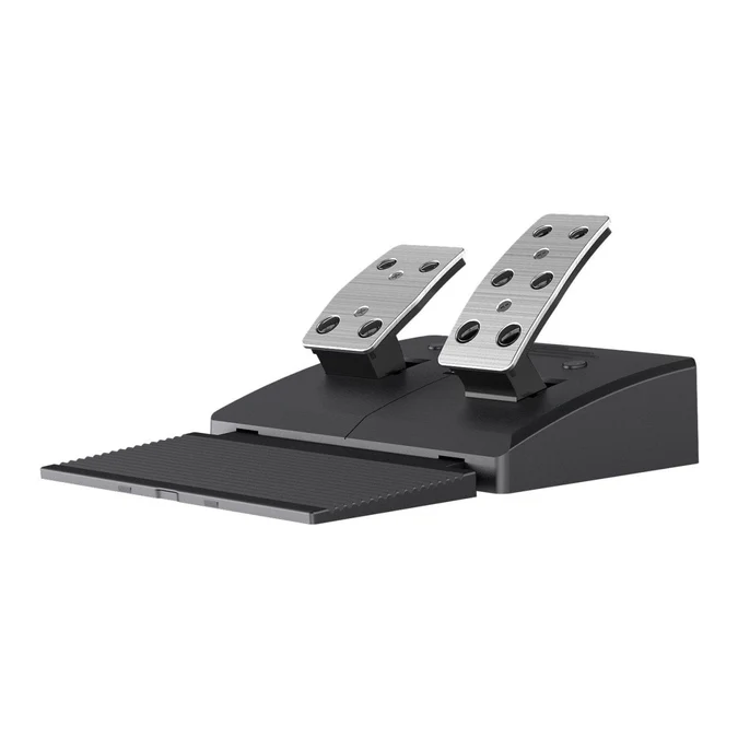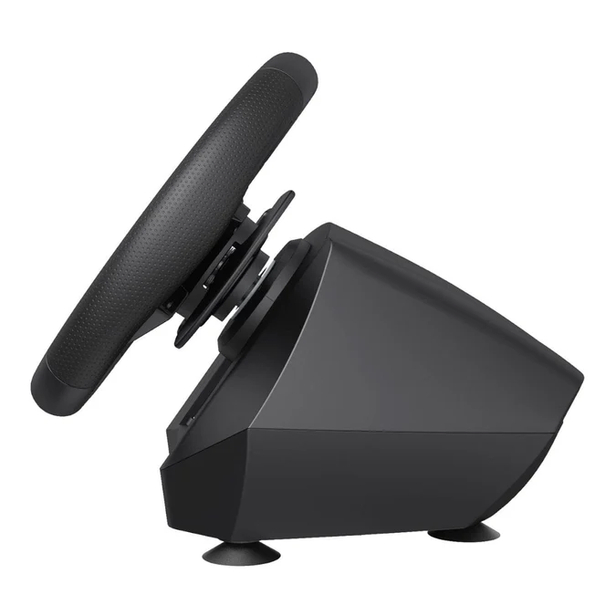 Built for serious sim racers, the PXN V900 Gen 2 offers physical switching between 270° and 900° of steering rotation, allowing seamless adaptation for arcade racers or ultra-realistic driving simulators. At 900°, you get a full 2.5-turn range matching real-world steering wheels for accurate simulation. The 16-bit magnetic encoder sensor ensures micro-precision steering control, detecting even the slightest input with exceptional fidelity. Paired with dual vibration motors, the wheel dynamically adjusts the vibration output based on in-game physics, road texture, and vehicle handling. Feel the thrill of race-day design with Formula-style ABS paddle shifters that deliver crisp, smooth gear changes through a finger-slide action. The 28cm professional wheel design is wrapped in soft-touch TPU rubber grips, providing a fine textured finish that resists hand sweat and enhances long-session comfort. Two RGB light bars on either side of the wheel display real-time feedback for throttle and brake input, blending function and futuristic style for a cyber-inspired racing experience. Equipped with hall magnetic linear pedals, the V900 Gen 2 detects varying levels of pressure, offering nuanced throttle and brake control that adapts to your footwork with precision. A folding pedal texture and anti-slip base keep the unit stable underfoot, even during aggressive gameplay. With USB wired plug-and-play functionality, the PXN V900 Gen 2 supports multiple platforms for a broad range of racing titles from arcade favourites to sim-level realism. Features Switch between 270 and 900 degrees of steering wheel rotation 16-bit Magnetic Encoder for more precise movement of the wheel in real time High precision racing dual-paddle design Hall magnetic linear 2 foot pedal Built-in dual vibration motors for realism Support for multiple platforms Cyber style RGB lighting effect Wired connection with plug and play Specifications Base Sensor: 16-bit Connection Type: USB Wired Connection Working Voltage: 5V Working Current: 80mA during normal use, <150mA during vibration, <500mA during controller guidance Usage Temperature: 10 – 40°C Usage Humidity: 20 – 80% Colour: Black Product Dimensions(Steering Wheel): 28 x 34.1 x 28.5 cm Product Weight(Steering Wheel): 2270g Product Dimensions(2 Foot Pedals): 23.2 x 18.3 x 14 cm Product Weight(2 Foot Pedal): 845g In the Box PXN V900 Gen2 Gaming Steering Wheel – Black x1 2 Foot Hall Magnetic Pedal x1 Steering Wheel Clamps x2 Type-C to USB-A Cable x2 Micro USB to USB-A Cable x1 User Manual x1