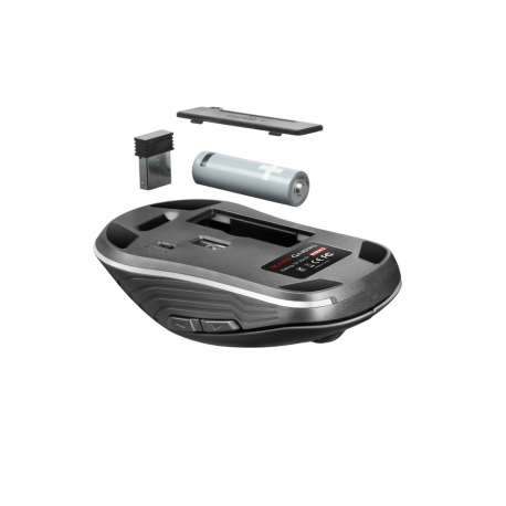 Tipo de bateria AA Peso do produto 73 g Banda de frequência 2.4 GHz Tecnologia de detecção de movimento Mecânico Interface de dispositivo RF Wireless Número de teclas 6 Resolução do movimento 3200 DPI Número de pilhas 1 Comprimento 123 mm Quantidade 1 Largura 67 mm Pilhas incluídas Não Propósito Jogos Fonte de alimentação Baterias Pega de borracha Sim Tipo de scroll (deslocamento) Roda Iluminação Sim Cor de iluminação Vermelho/Verde/Azul Forma Mão direita Cor do produto Preto Altura 39 mm Comprimento da embalagem 123 mm Largura da embalagem 67 mm Altura da embalagem 39 mm Peso da embalagem 73 g Sistema operativo Windows compatível Sim Sistema operativo Mac compatível Sim Interface recetor wireless USB Type-A Recetor incluído Sim Sistema operativo Linux compatível Sim Quantidade de modos de resolução de movimento 3 Design ergonómico Sim